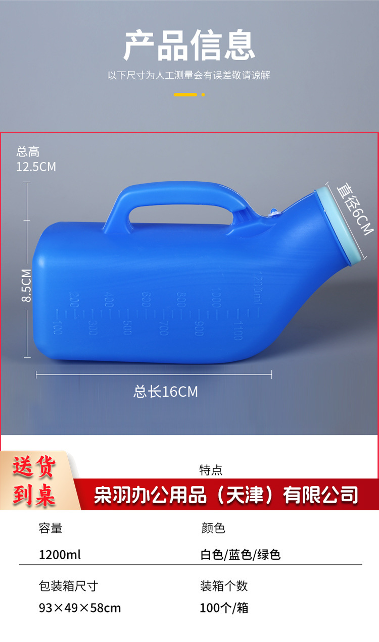 老人尿壶家用带盖小便器 男女尿壶 塑料小便壶接尿壶便盆夜壶1200