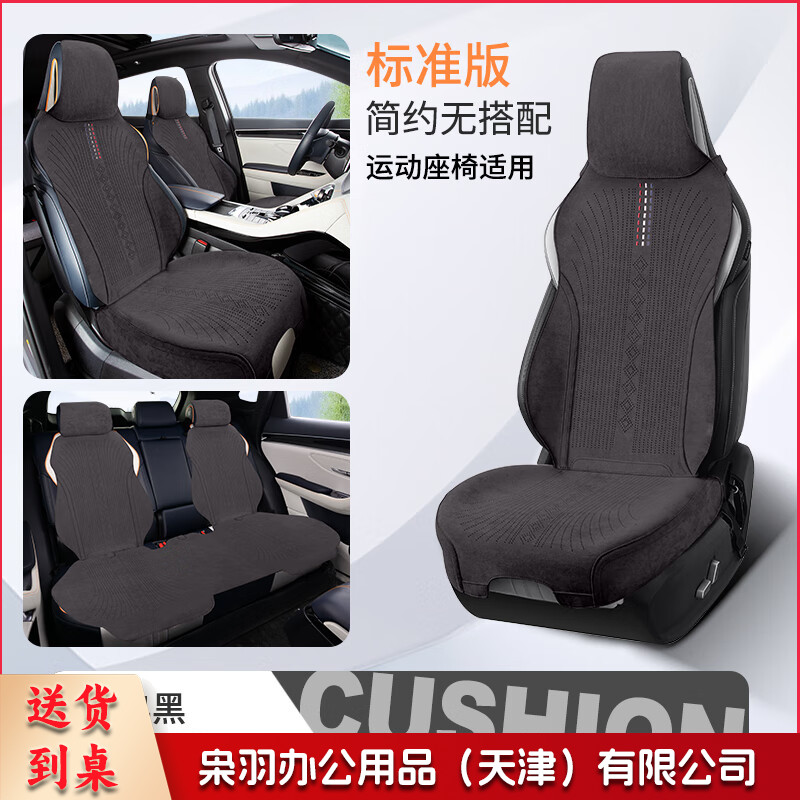 新款翻毛皮汽车坐垫四季通用小蛮腰透气时尚座垫半包小车垫座椅套 连帽版-经典黑【全车五座】 舒适款