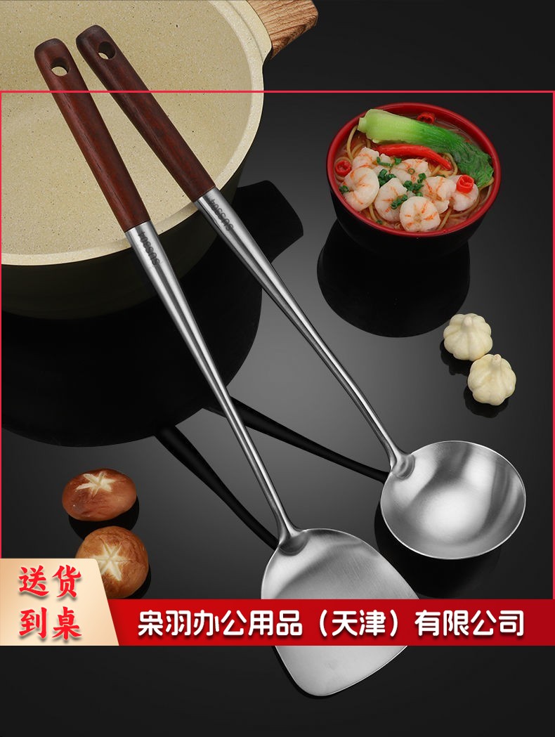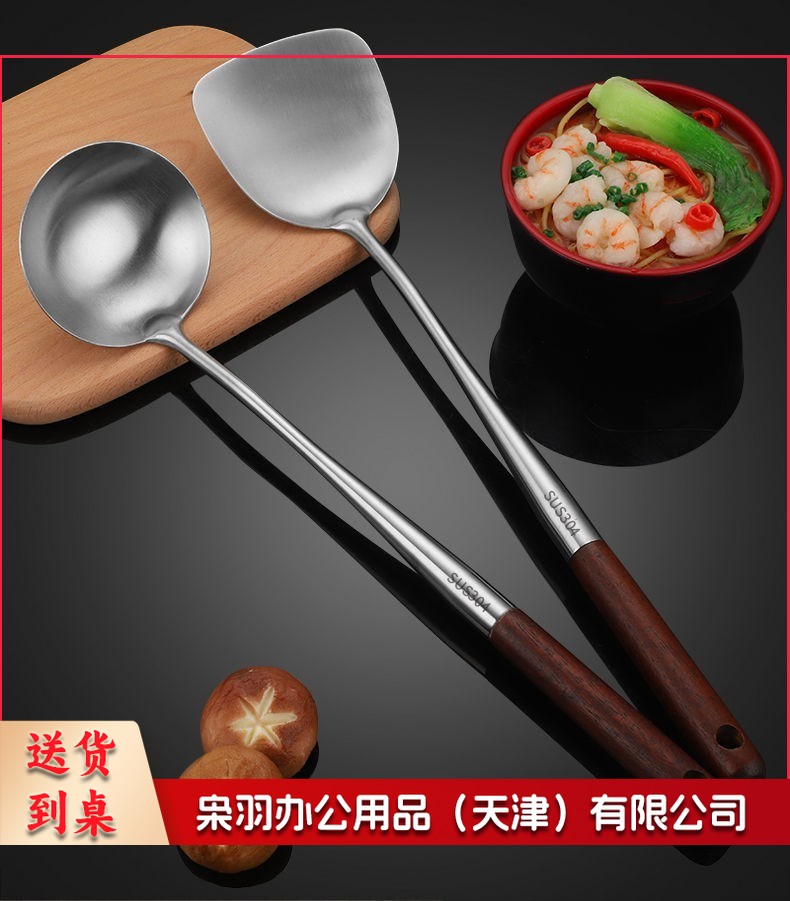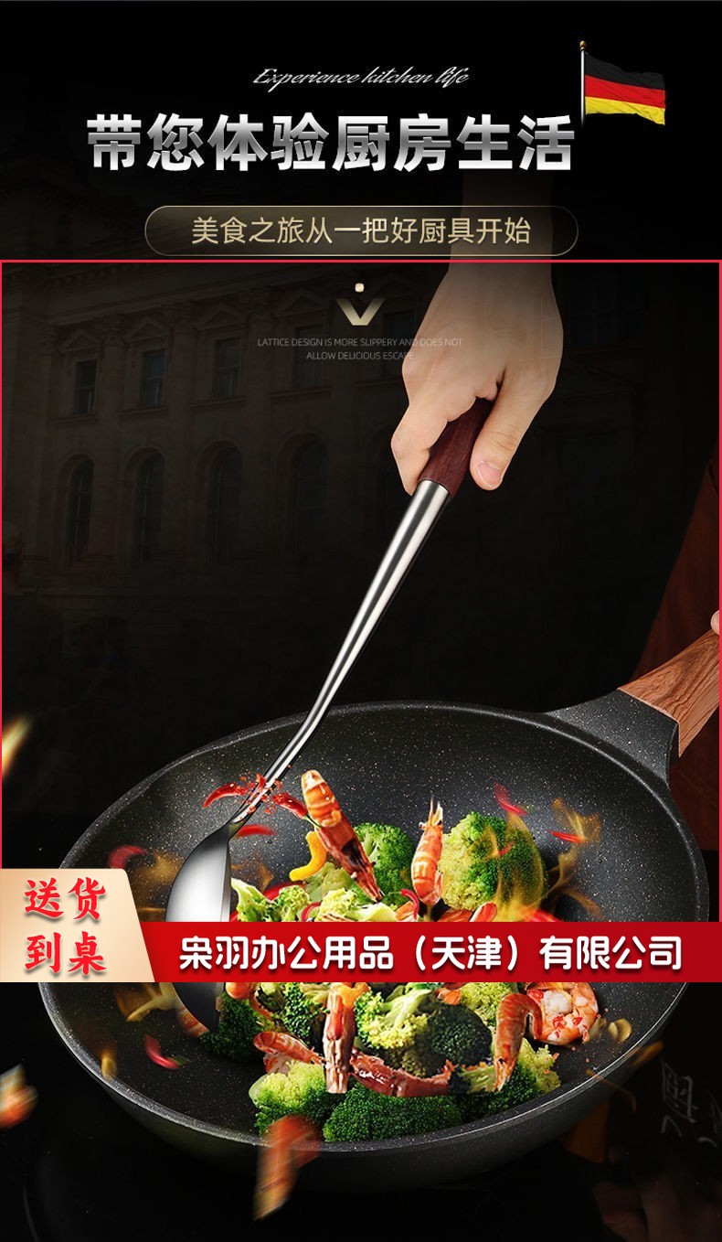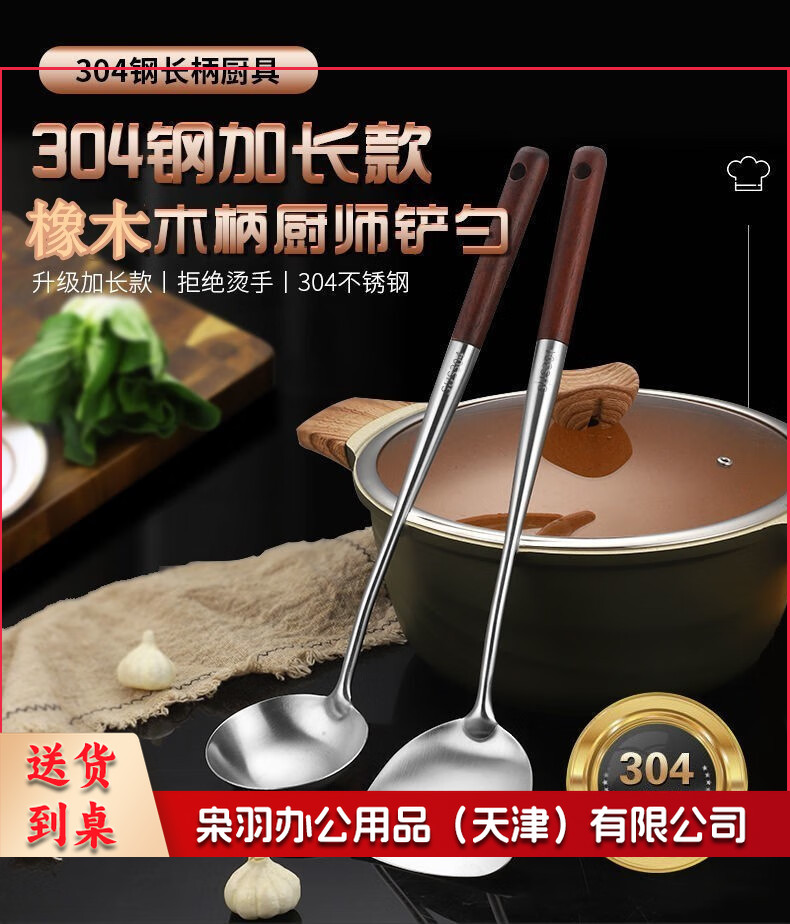 304不锈钢炒勺厨师专用勺铲套装长柄家用厨房炒菜汤勺锅勺子大号 304加厚加长款 锅勺