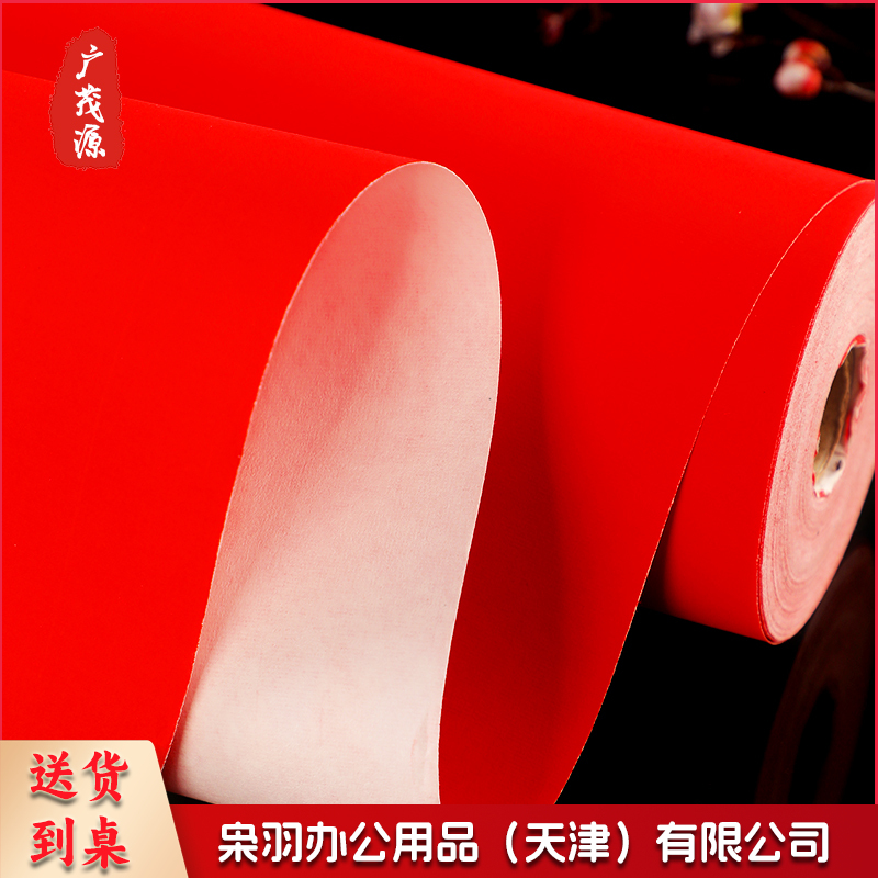 对联纸万年红纯红蜡染加厚80克春联对联纸结婚乔迁春节家用红纸双层夹宣半生熟长卷毛笔书法剪纸空白手写春联40厘米宽 X 50米长【纯红素面】