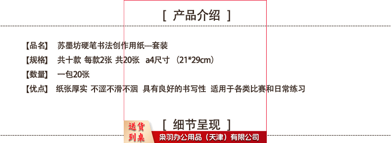苏墨坊A4硬笔书法纸学生比赛用纸钢笔纸练习临摹套装
