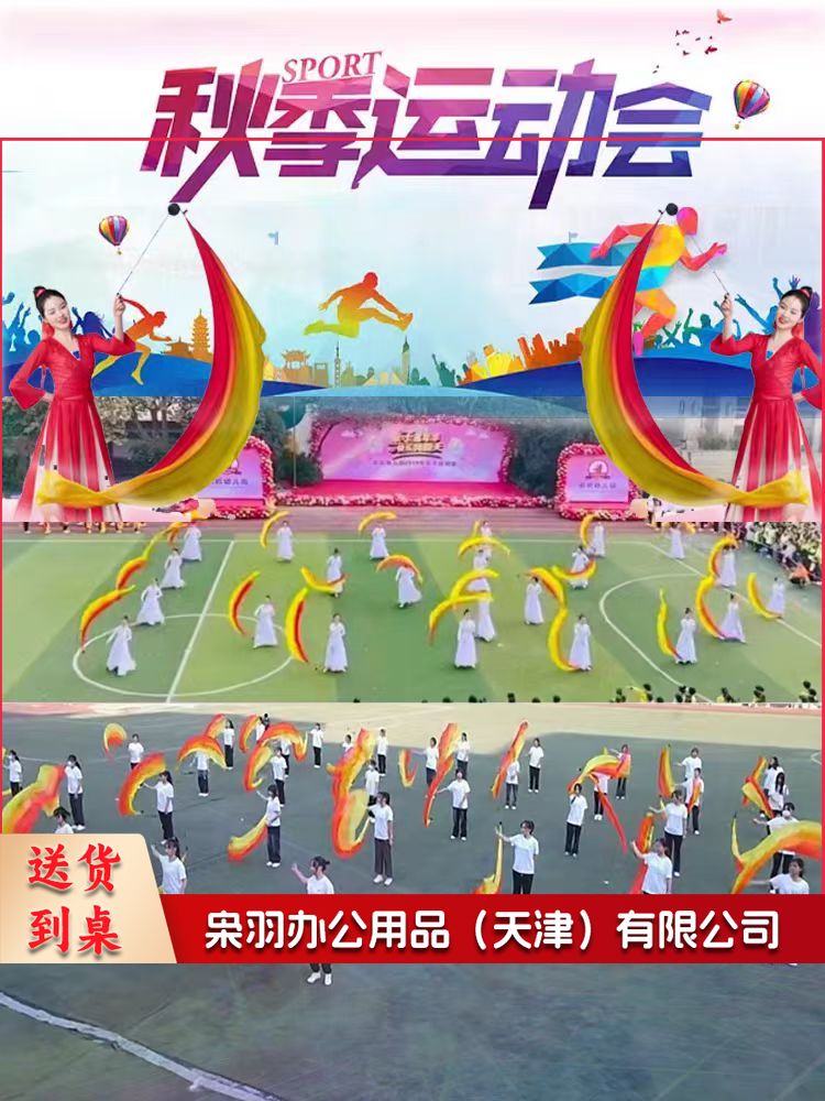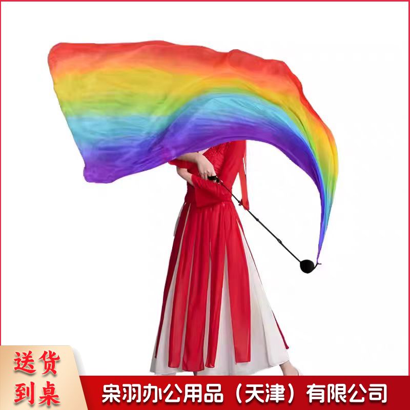 运动会开幕式纱球舞甩纱巾彩绸彩带仿真丝(七彩长2米含沙球)