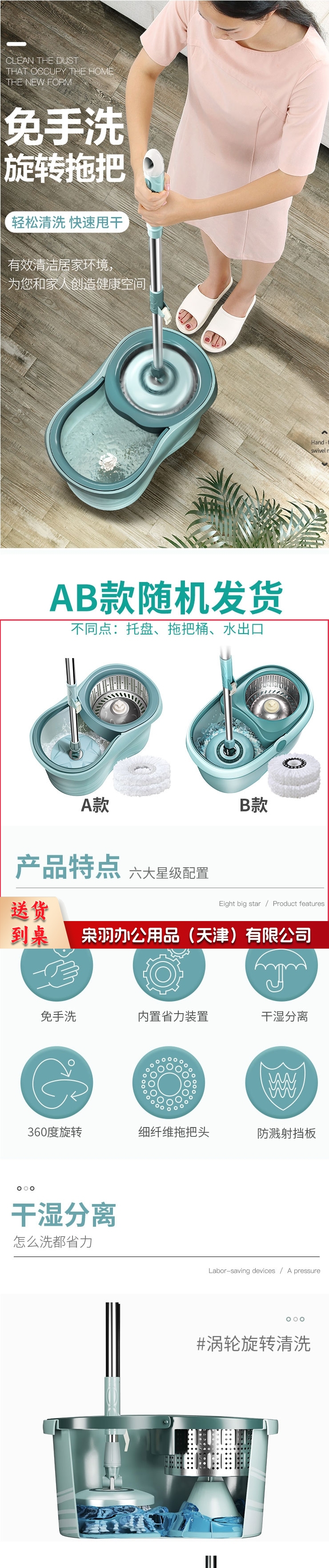 旋转拖把免手洗拖布桶懒人墩布家用手压式干湿两用瓷砖木地板拖地神器 配2个头 YZ-A105 QJ.466