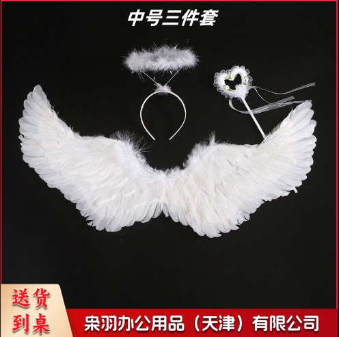 羽毛翅膀天使道具舞台表演儿童模仿走秀演出圣诞节日装饰三件套(中号)