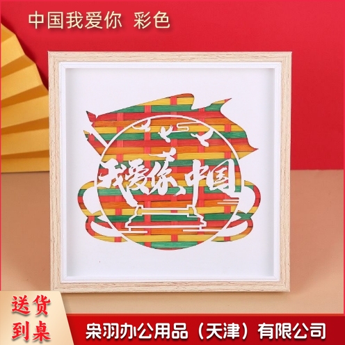 非遗竹编画手工diy材料包国潮竹编相框摆台我爱中国暖场团建亲子(下单备注款式,联系客服)