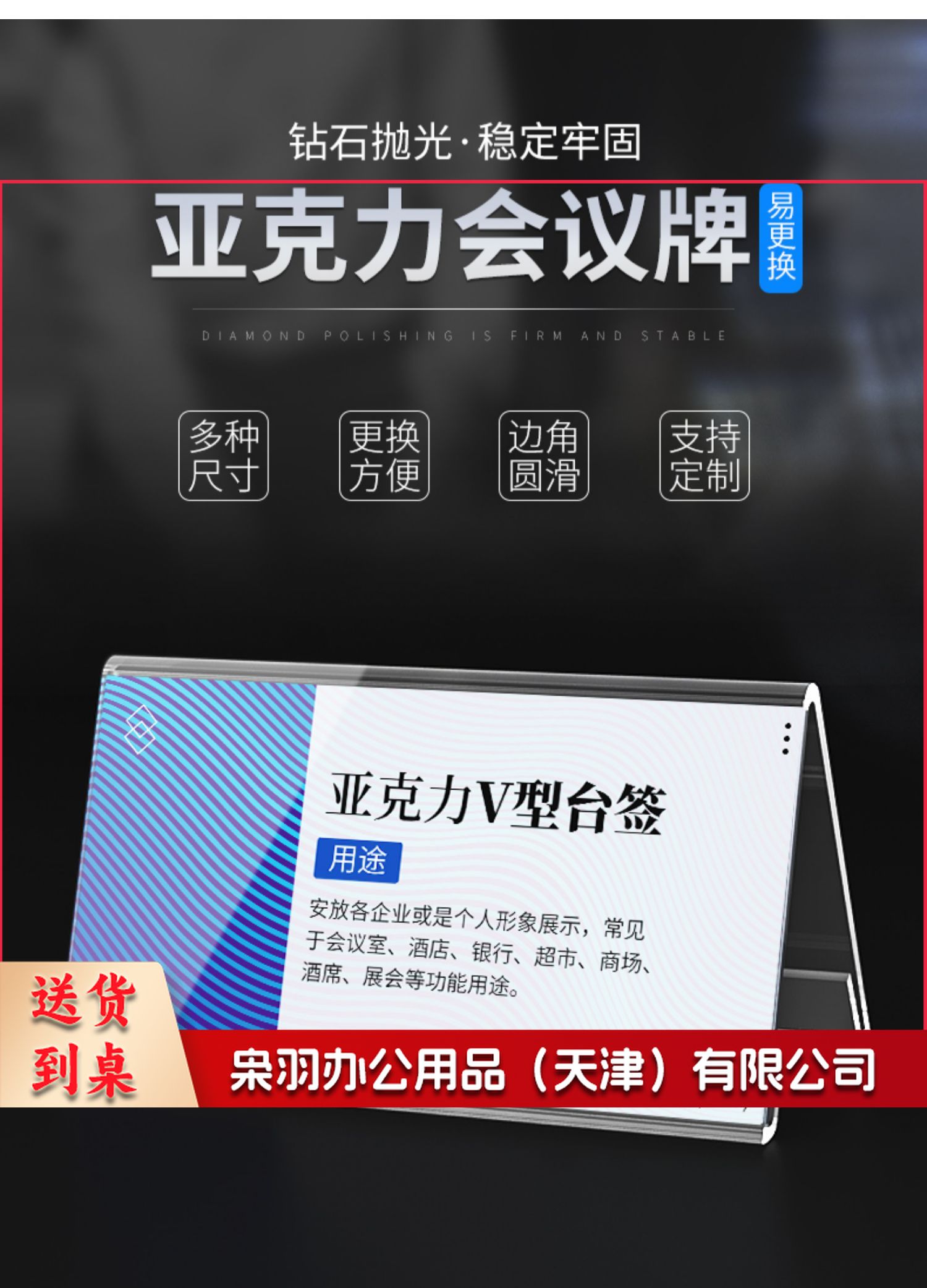 V型桌牌座位牌席位牌台卡台签桌签亚克力桌面展示牌评委牌名字牌工位职位牌 【标准款】三角桌牌200*100mm