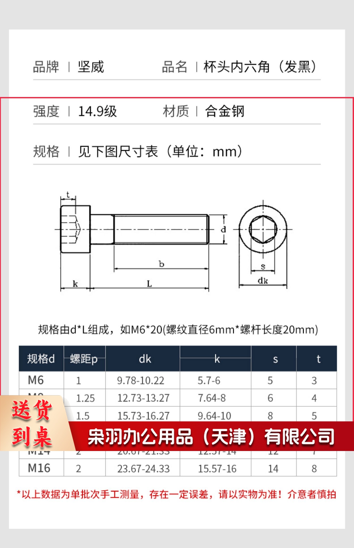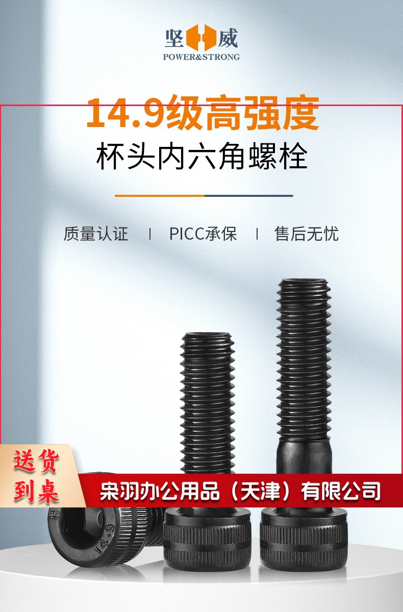 10*40 14.9级高强度杯头内六角螺丝加长螺栓合金钢黑色螺钉