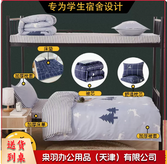 床品套件 蓝色 全棉六件套床上用品宿舍单人床被褥套装寝室被子