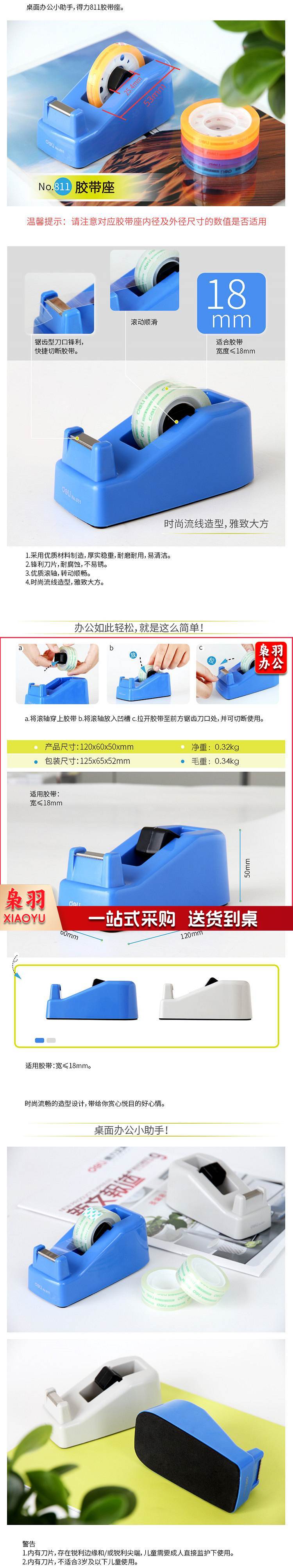 得力811 胶带座120*60*50mm/适18mm(蓝色)(单位:只)