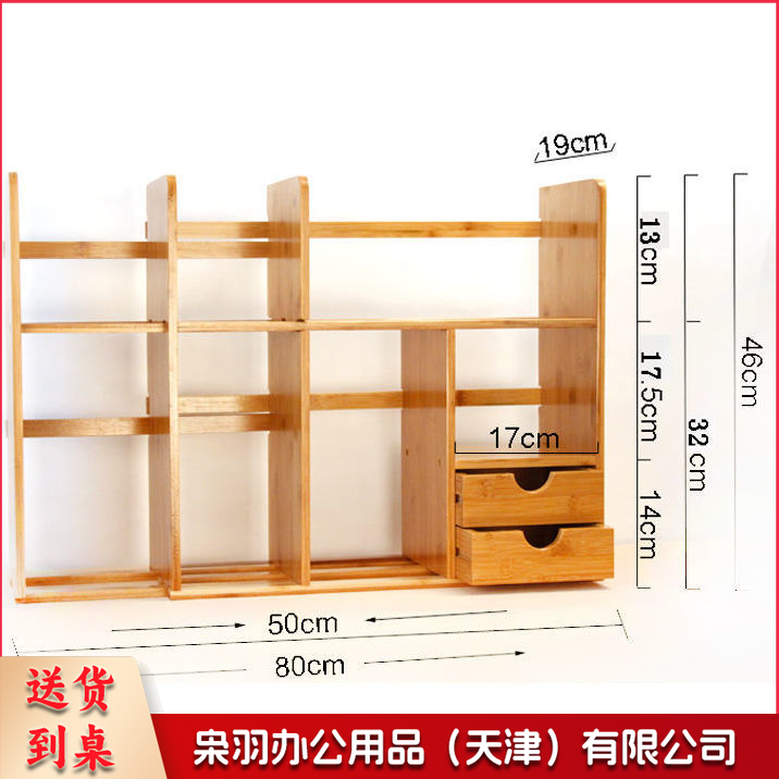 简易书架桌上小书架迷你伸缩小型办公桌面收纳二层收缩51-80长双抽屉