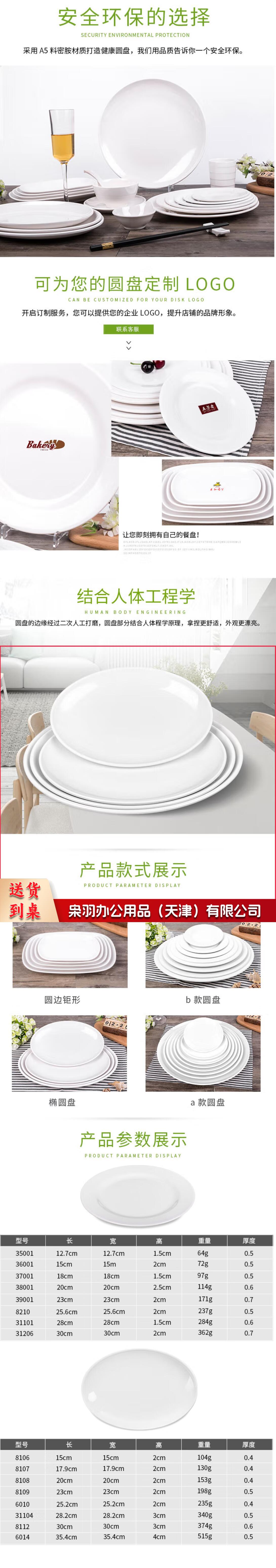密胺盘圆形冷菜碟快餐凉菜塑料盘子9寸23cm(手工测量)