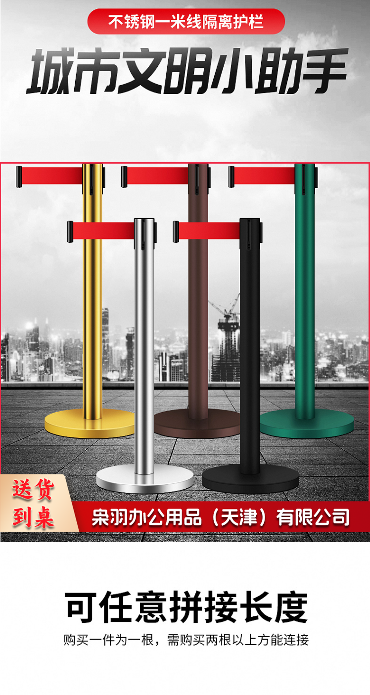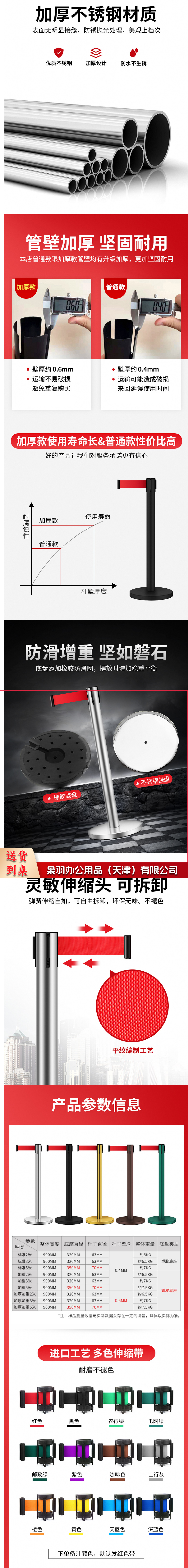 不锈钢一米线栏杆警戒线隔离带伸缩带 道路护栏围栏酒店机场学校排队加厚加重ZA1401不锈钢5米线