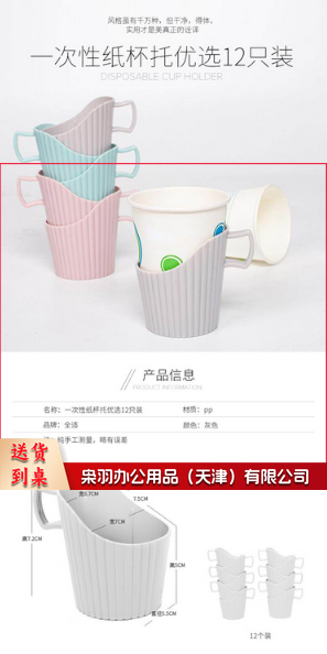 全适 一次性纸杯托 茶托家用办公杯座隔热托纸杯盒杯套 灰色 12个装