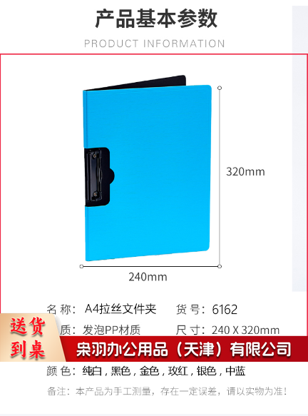 A 4横式折页板夹会议夹 加厚硬文件夹 签约夹板试卷资料收纳夹菜单夹 文件收纳用品 黑色1个