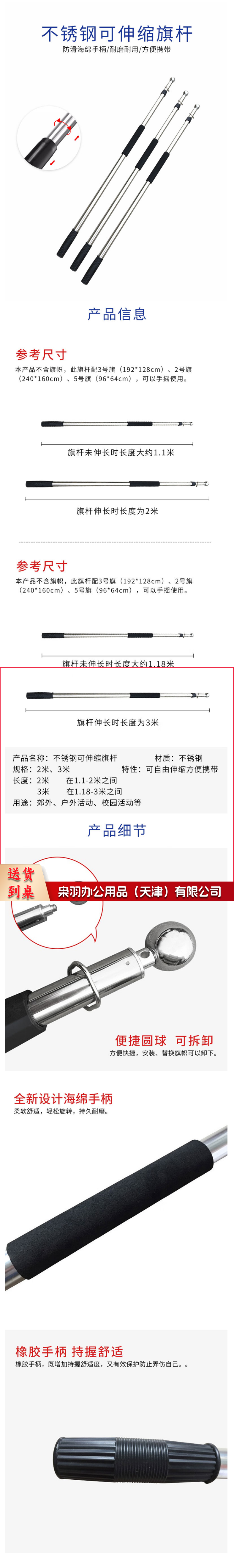 手持党旗旗杆 加粗加厚 国旗伸缩旗杆红旗杆收缩党旗杆国旗杆户外 3米不锈钢伸缩旗杆
