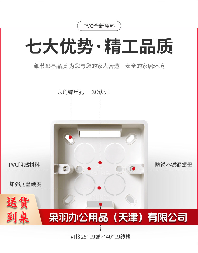 86HT35 86型明装底盒明线盒 加厚开关插座明盒