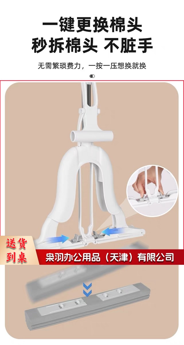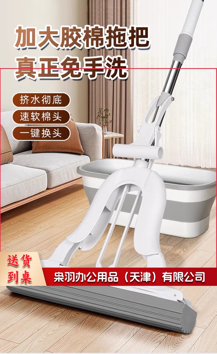38cm 胶棉拖把魔术对折挤水大号家用吸水海绵拖把免手洗拖地神器