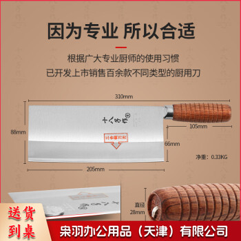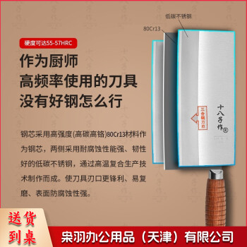 十八子作 厨师专用刀 专业中式厨刀菜刀 三合钢名典系列 木柄2号桑刀F208-2
