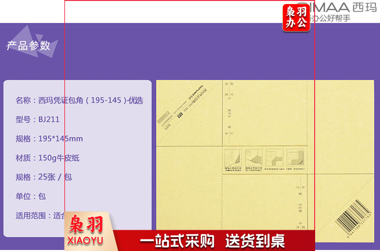 西玛(SIMAA)195-36 通用凭证包角纸 195*145mm 25张/包(可包50个)记账凭证报销单装订封面封皮(单位:包)