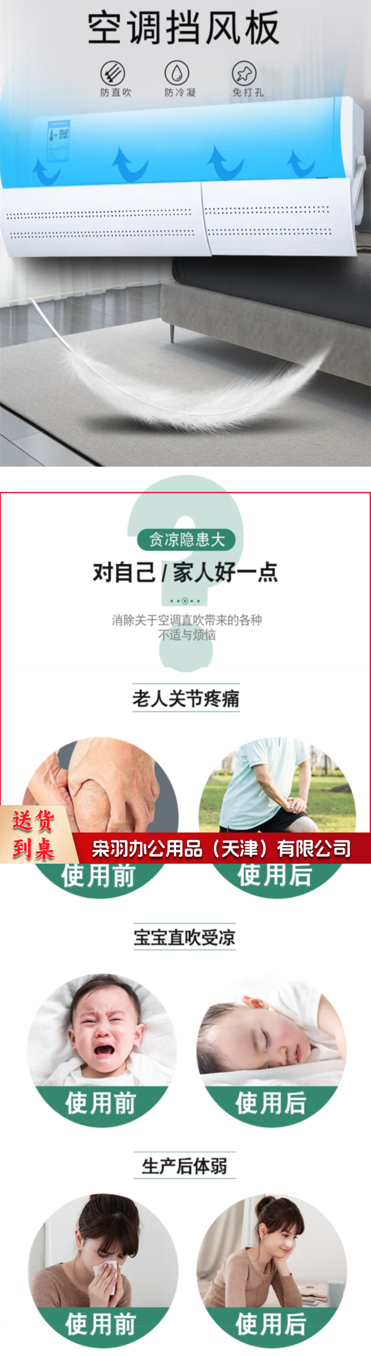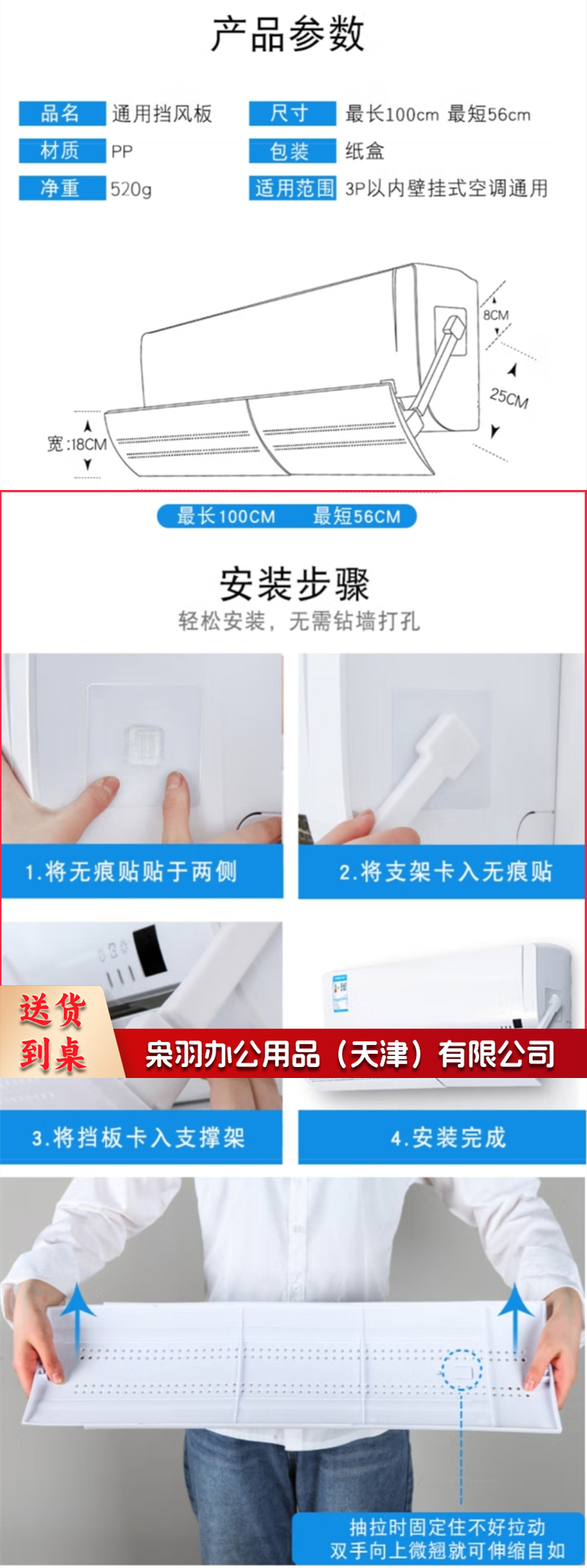 免打孔空调挡风板防直吹空调挡板遮风板格力美的海尔奥克斯挂式通用
