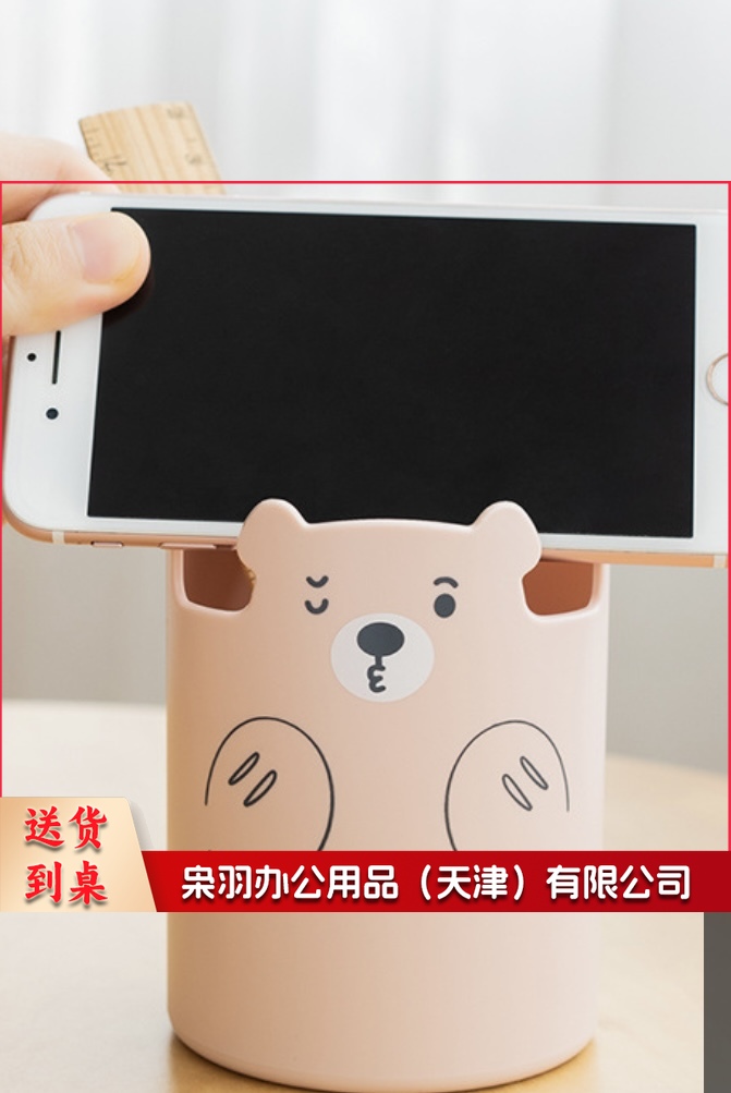 桌面办公学生小熊笔筒可爱简约桌面文具化妆刷收纳手机支架笔筒 粉色