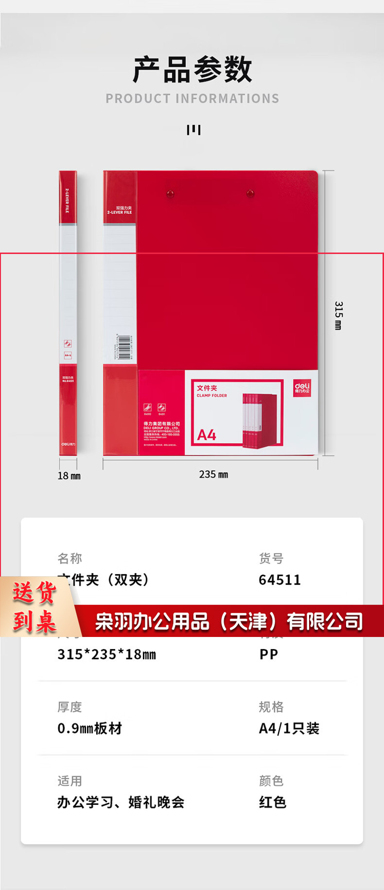 7701649720EA 得力 64511 强力红色文件夹