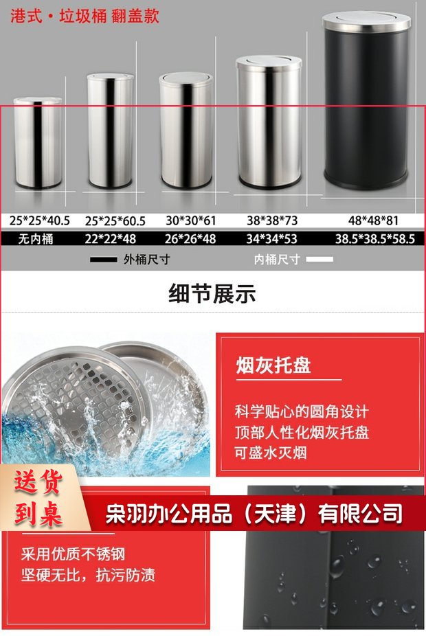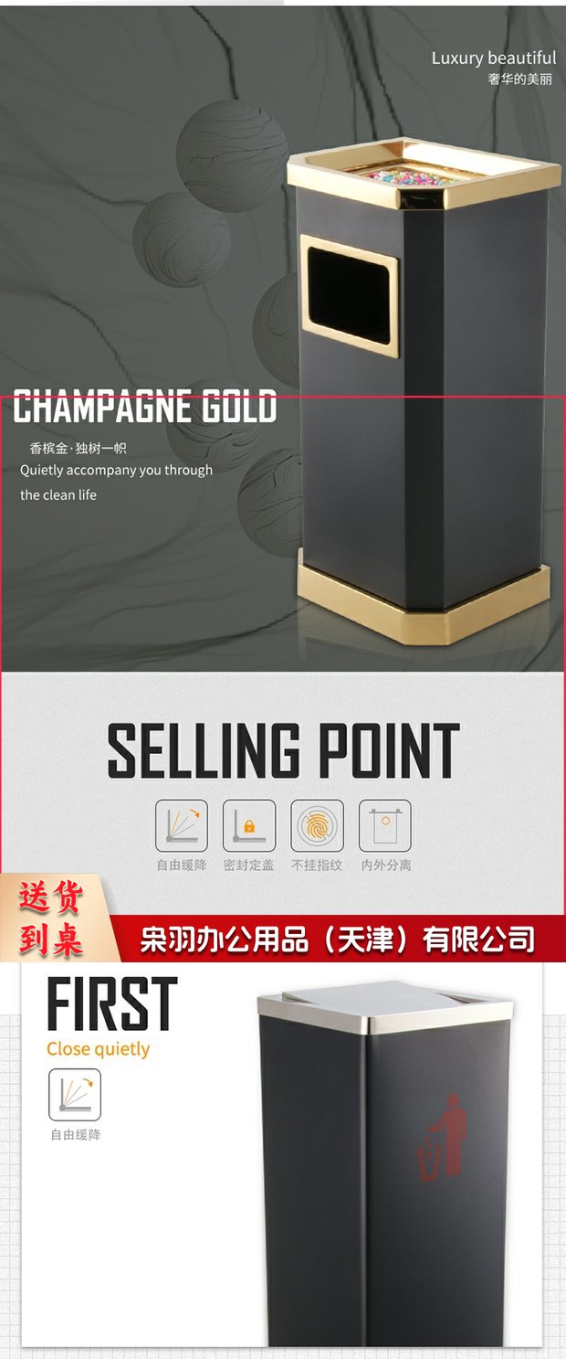 不锈钢酒店大堂垃圾桶烟蒂柱灭烟桶带烟灰缸室外吸烟区电梯口立式(正方形不锈钢(镀锌内胆))