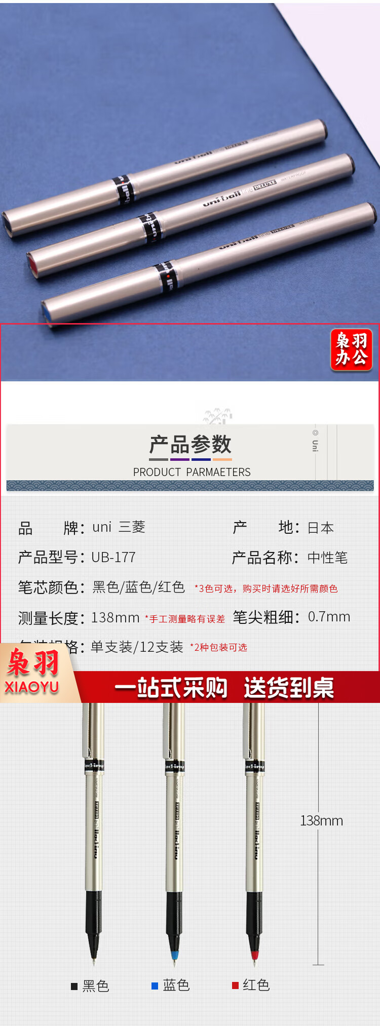 三菱(UNI) UB-177 签字笔 0.7mm 黑色(单位:支)