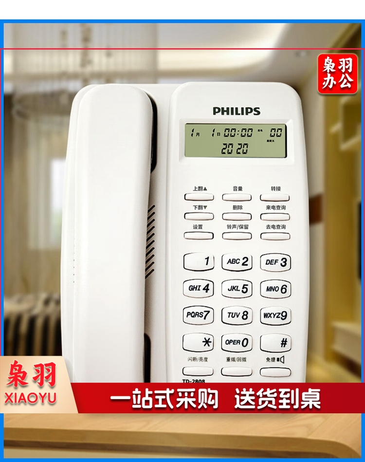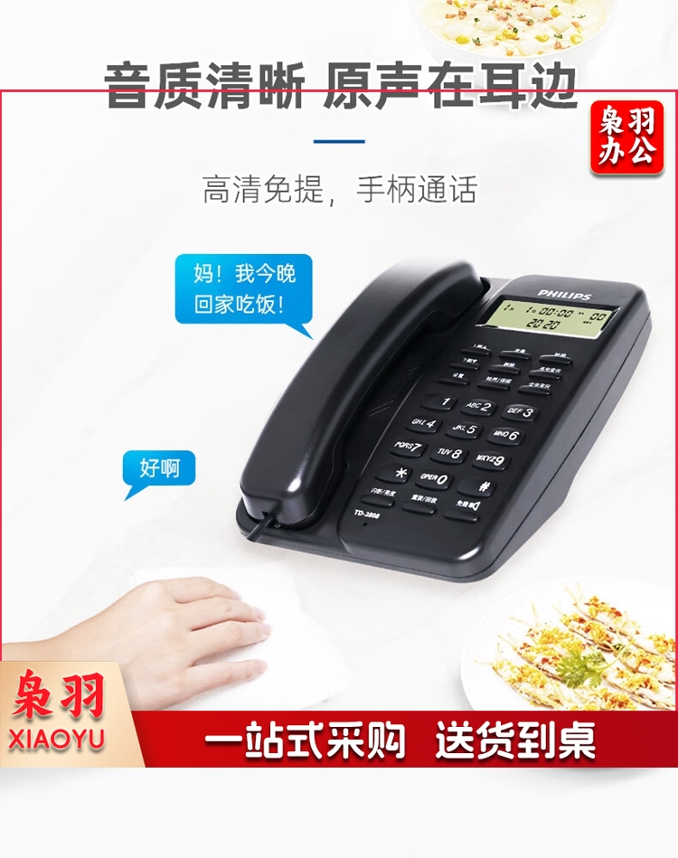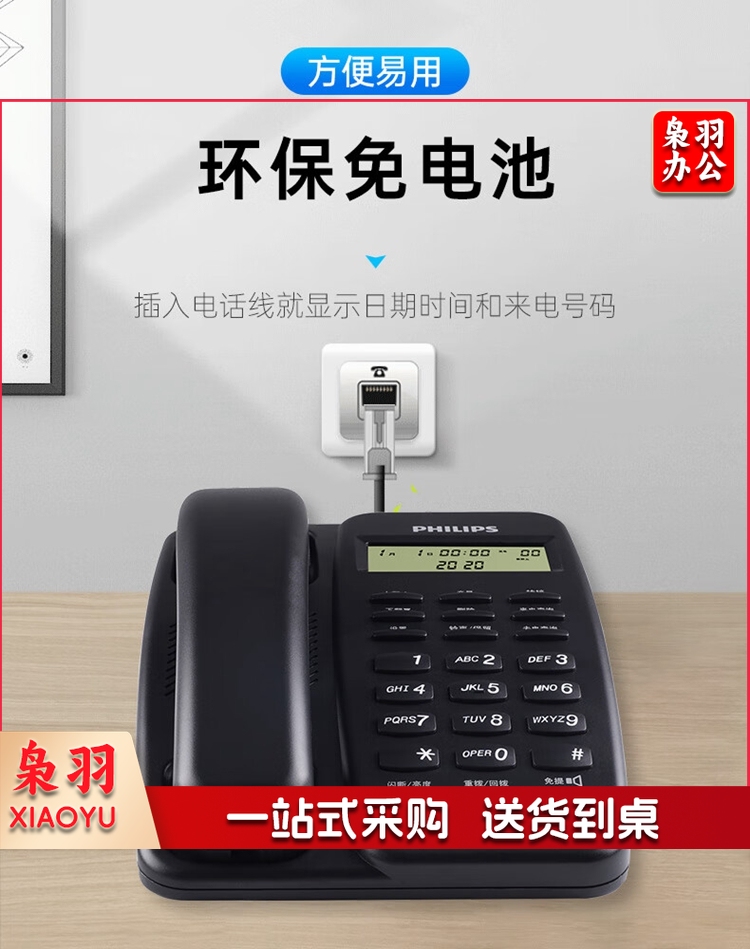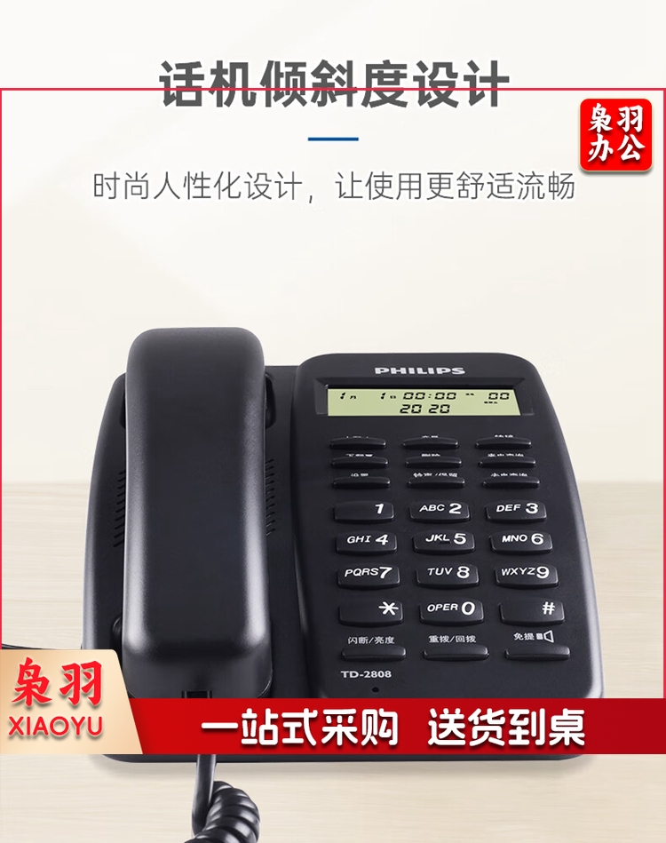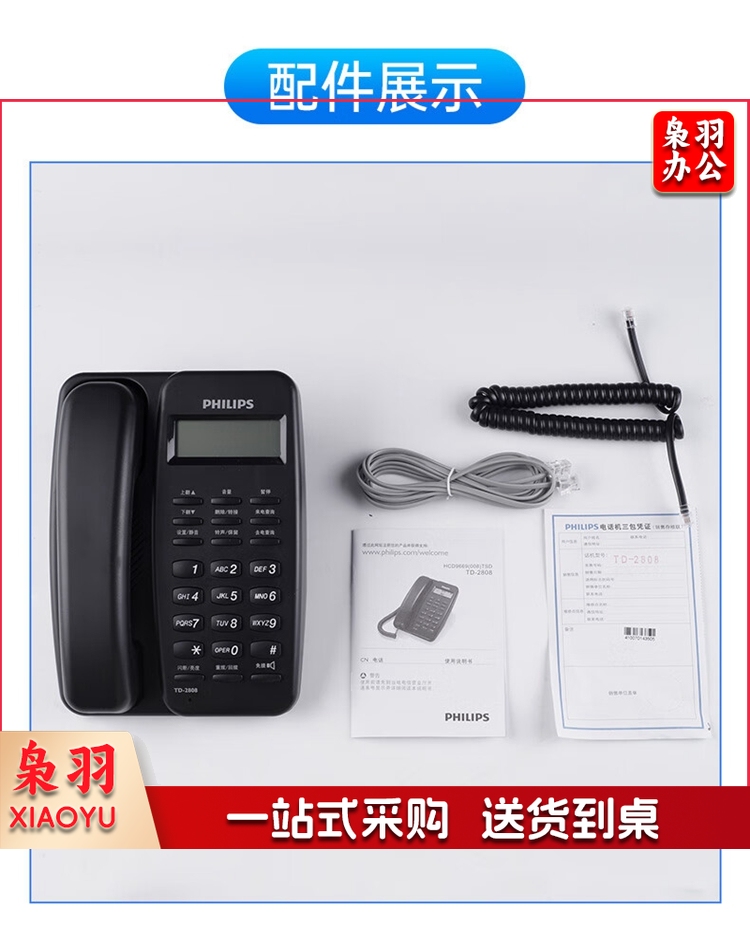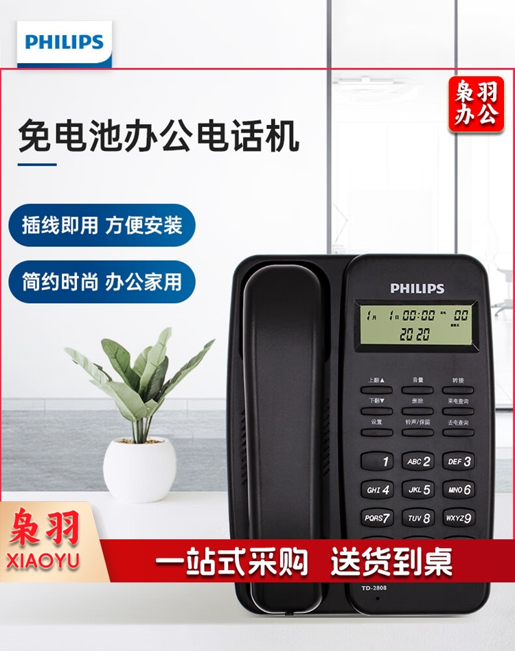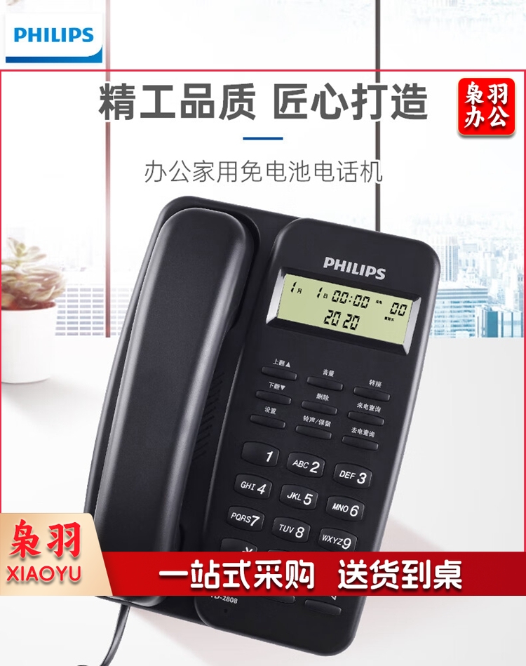 飞利浦/PHILIPS TD-2808 免提通话 免电池 电话机 黑色 单位:个