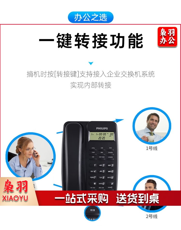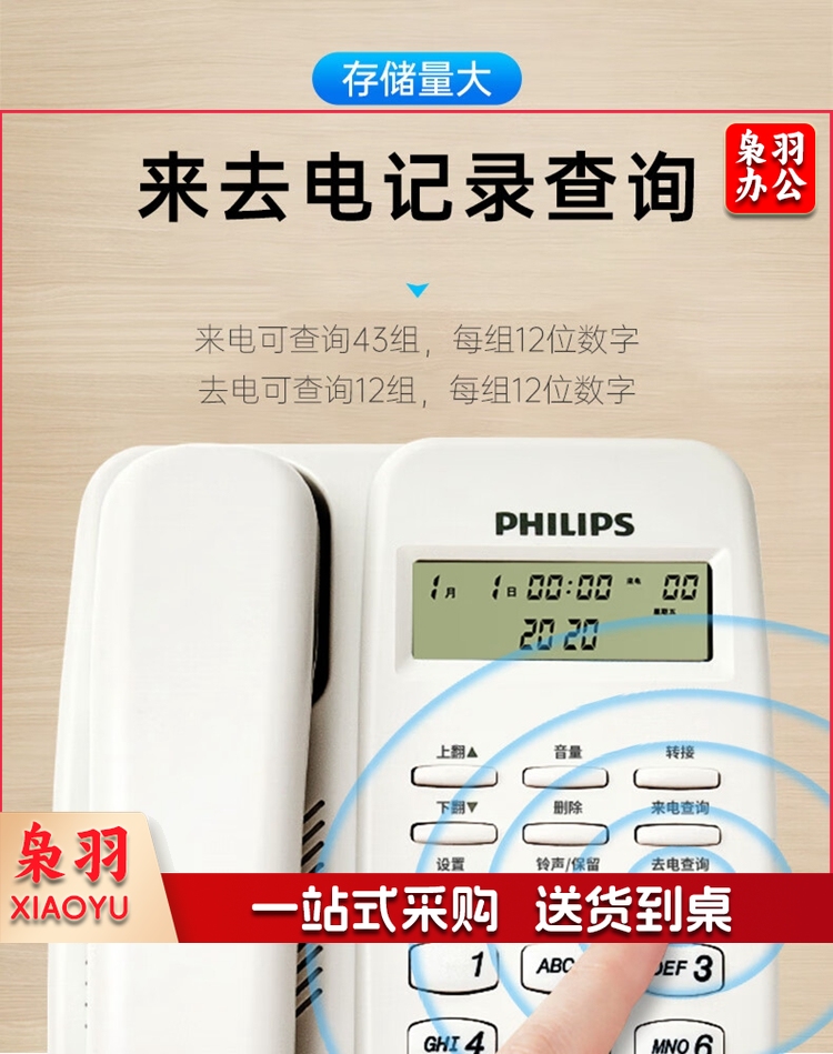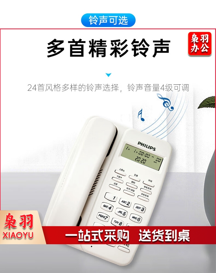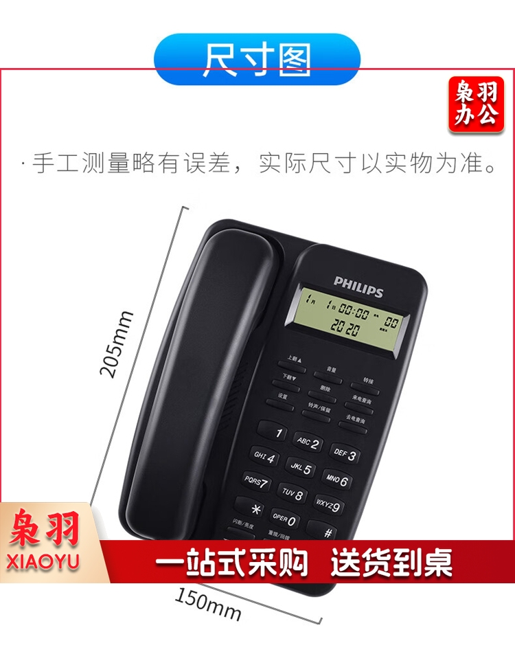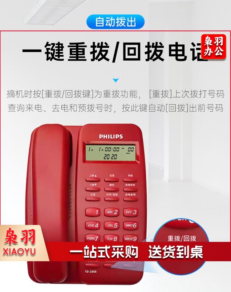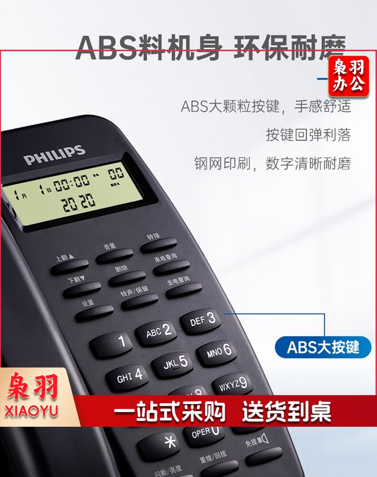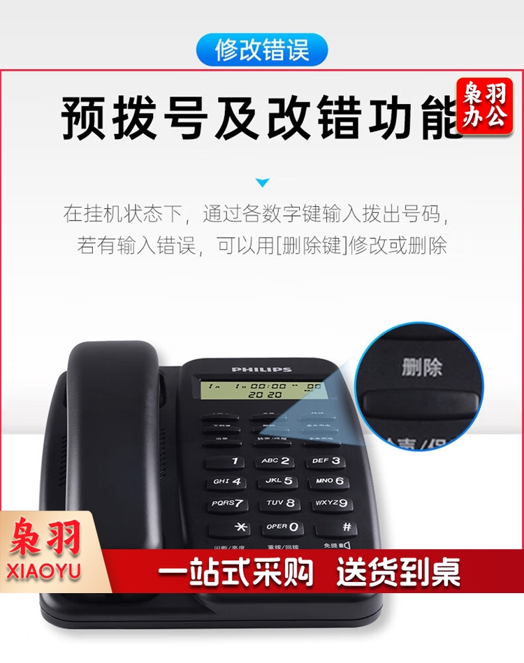 飞利浦/PHILIPS TD-2808 免提通话 免电池 电话机 黑色 单位:个