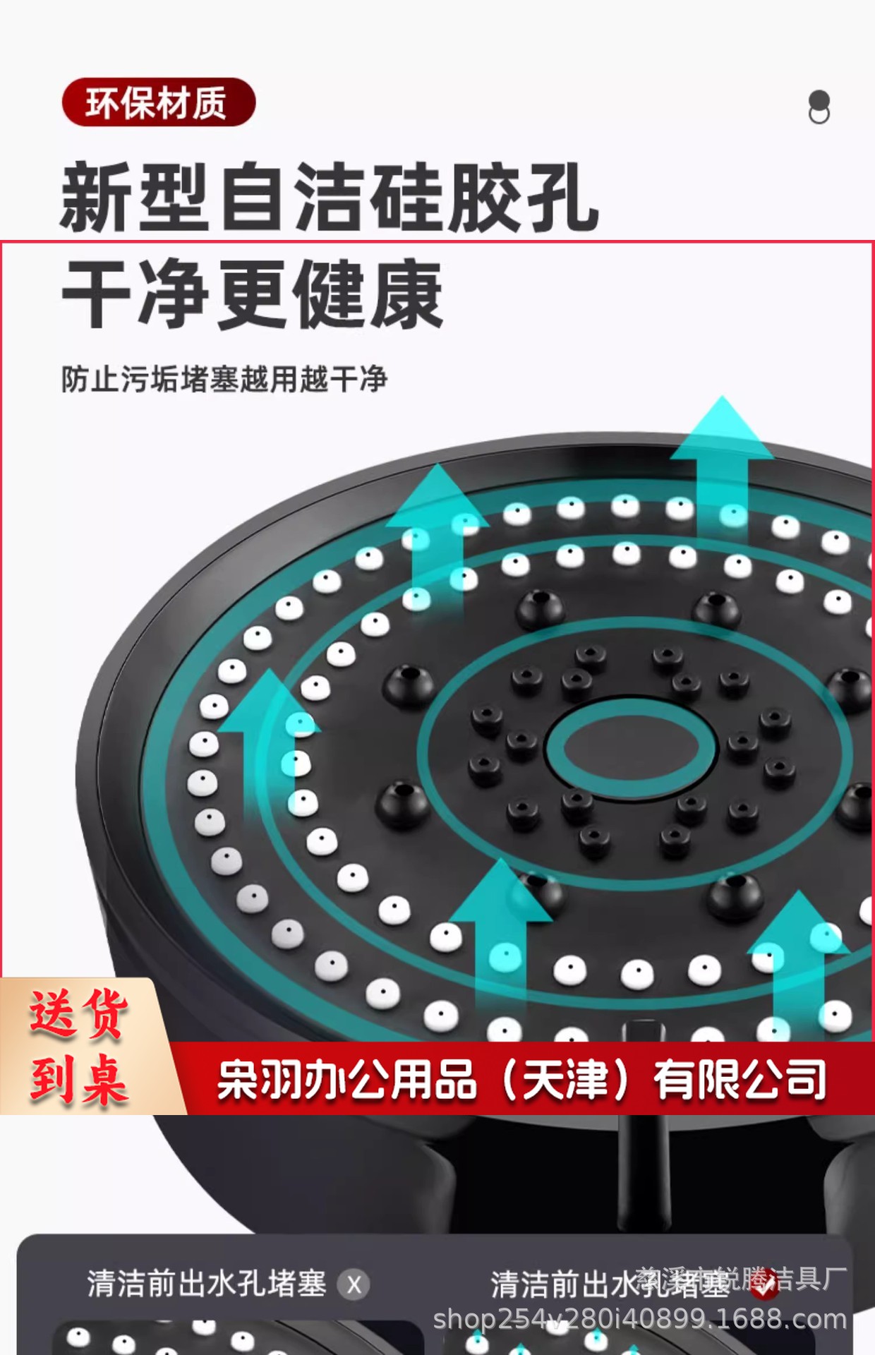 五档多功能大出水喷雾增压淋浴手持式花洒喷头磨砂黑色莲蓬头套装(小银色五档软刺)