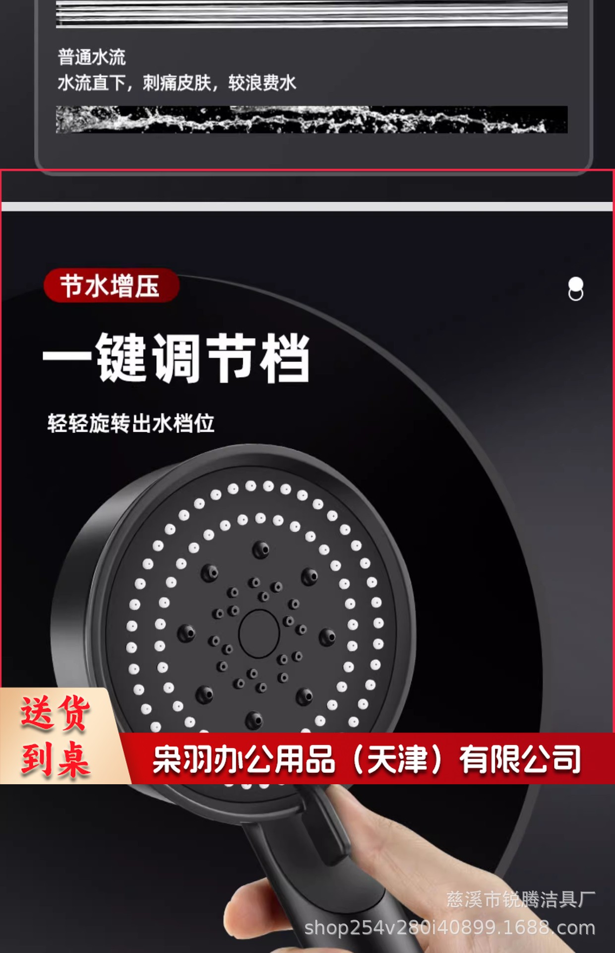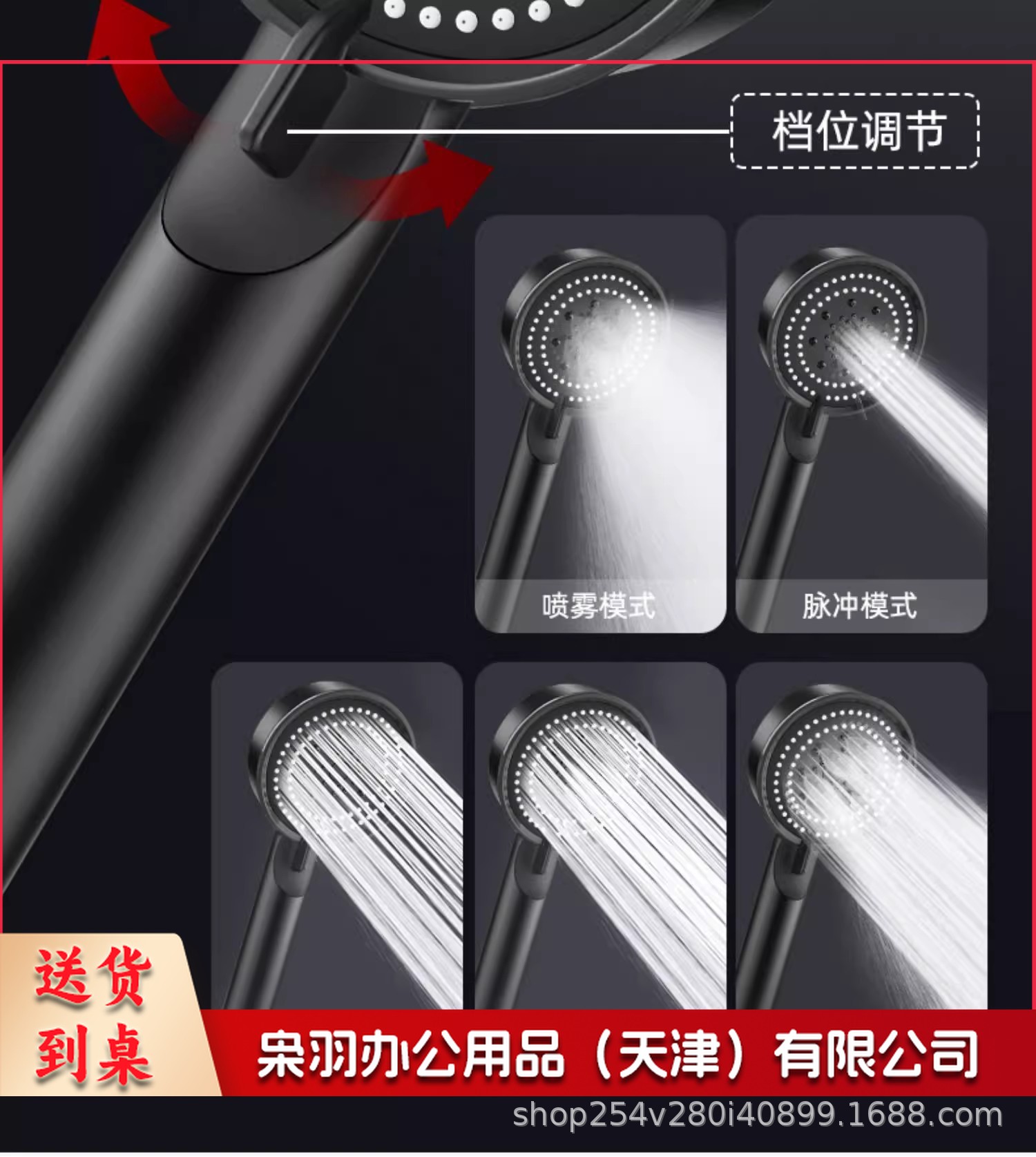 五档多功能大出水喷雾增压淋浴手持式花洒喷头磨砂黑色莲蓬头套装(小银五档硬刺十1.4米银管全塑十厦门免打孔银十自封袋)