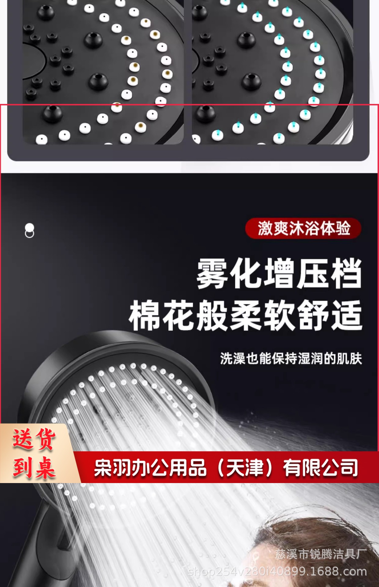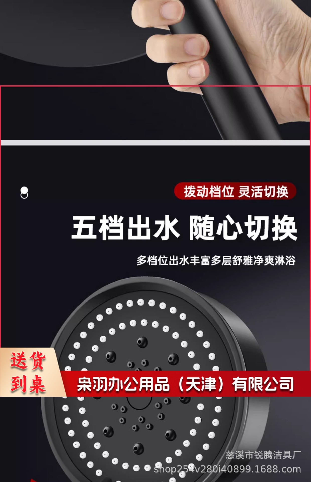 花洒喷头 淋浴喷头 淋浴配件 花洒配件 五档多功能大出水喷雾增压淋浴手持式花洒喷头磨砂黑色莲蓬头套装(1.4米黑管全塑)