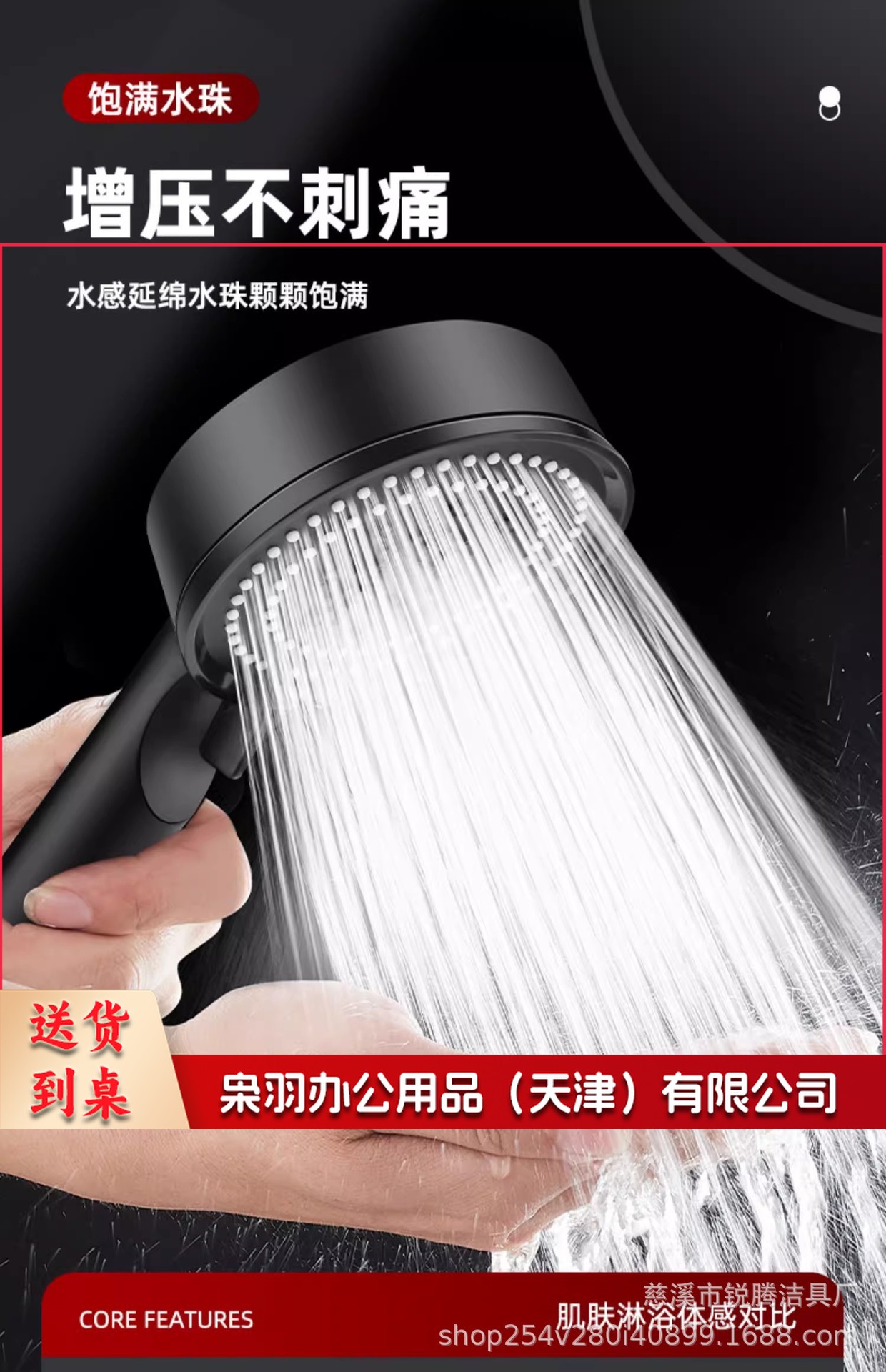 花洒喷头 淋浴喷头 淋浴配件 花洒配件 五档多功能大出水喷雾增压淋浴手持式花洒喷头磨砂黑色莲蓬头套装(1.4米银管水洗全塑)