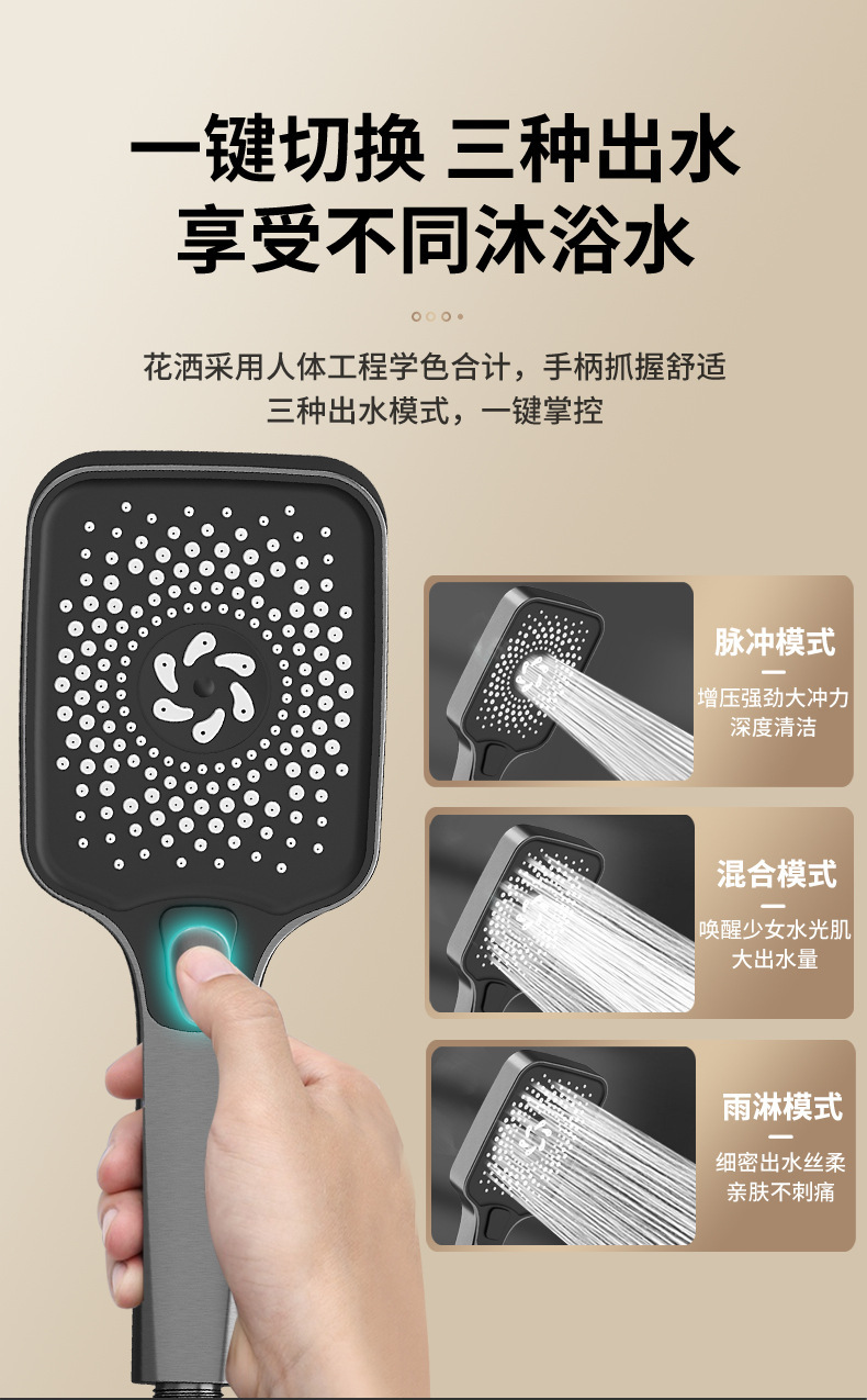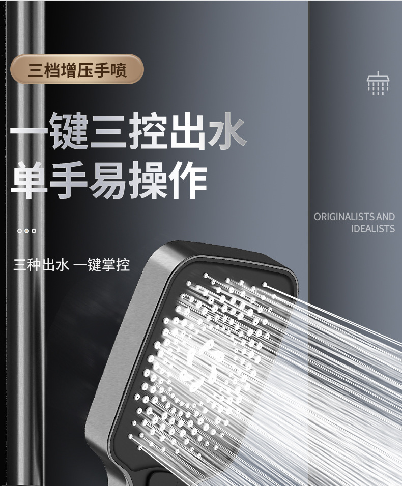 学校淋浴花洒套装淋浴器卫生间精铜枪灰恒温洗澡淋雨浴霸增压花洒(钢琴按键【枪灰色】四档冷热出水●送置物架)