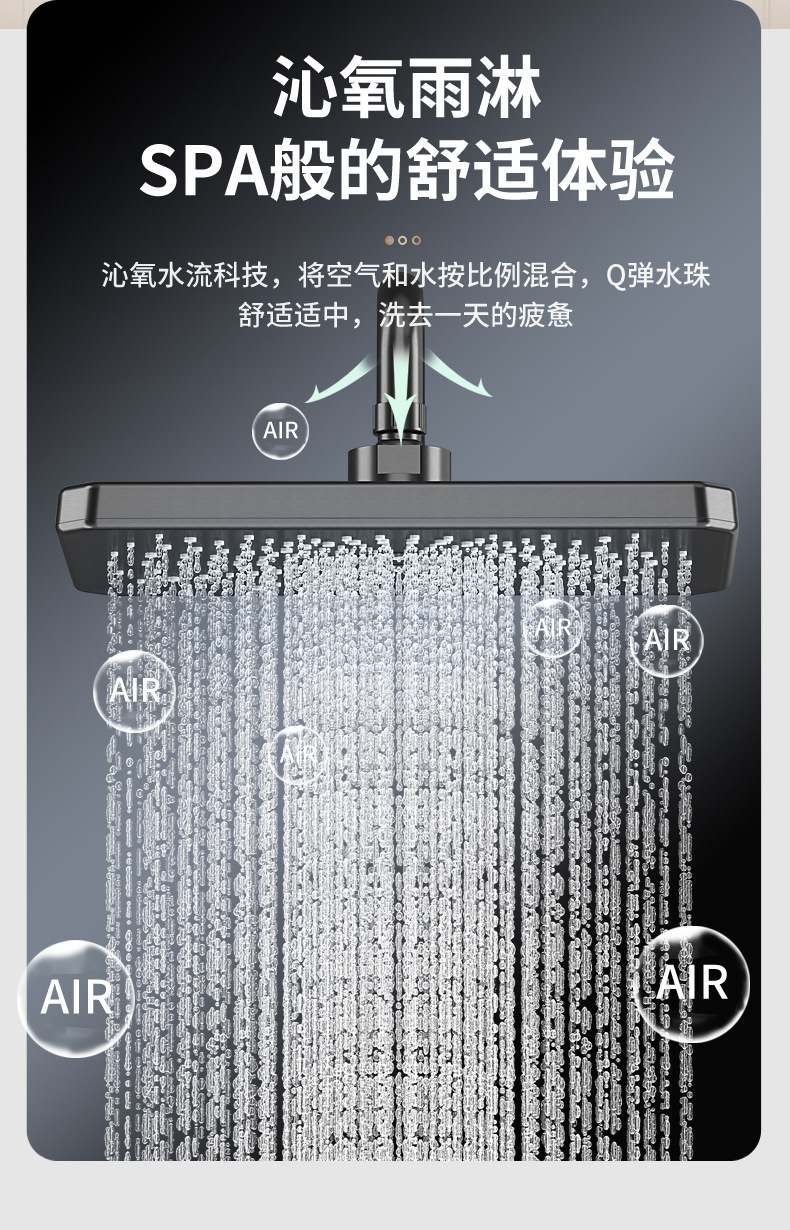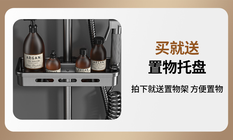 学校淋浴花洒套装淋浴器卫生间精铜枪灰恒温洗澡淋雨浴霸增压花洒(钢琴按键【雅黑色】四档冷热出水●送置物架)