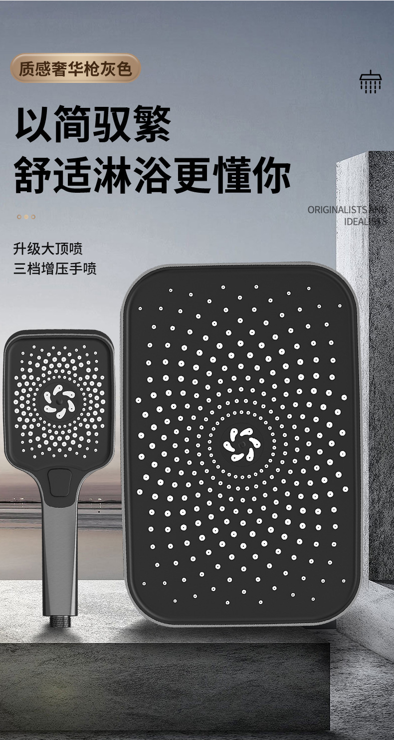 学校淋浴花洒套装淋浴器卫生间精铜枪灰恒温洗澡淋雨浴霸增压花洒(钢琴按键【雅黑色】四档恒温出水●送置物架)