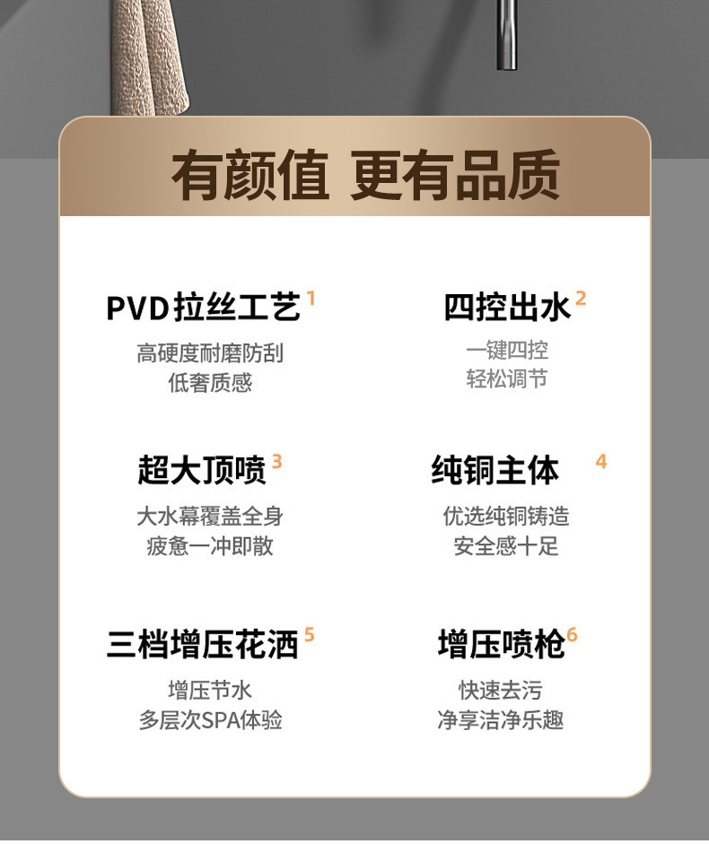 学校淋浴花洒套装淋浴器卫生间精铜枪灰恒温洗澡淋雨浴霸增压花洒(钢琴数显按键【枪灰色】四档冷热出水●送置物架)