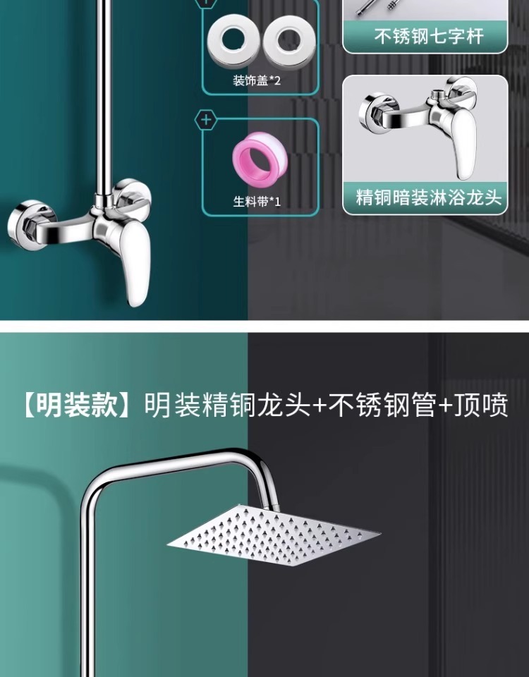 学校用花洒 校用淋浴 (【暗装款】精铜龙头+不锈钢管+6寸不锈钢方顶喷)卫浴工程花洒套装澡堂淋浴浴场学校浴池简易明装暗装冷热喷头