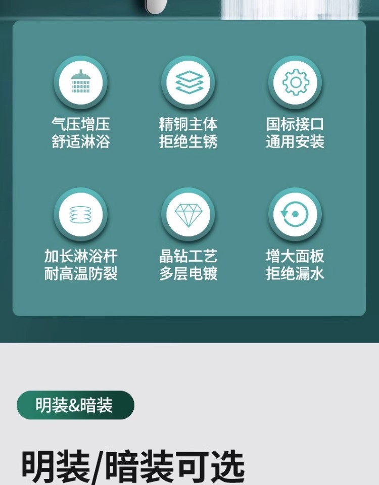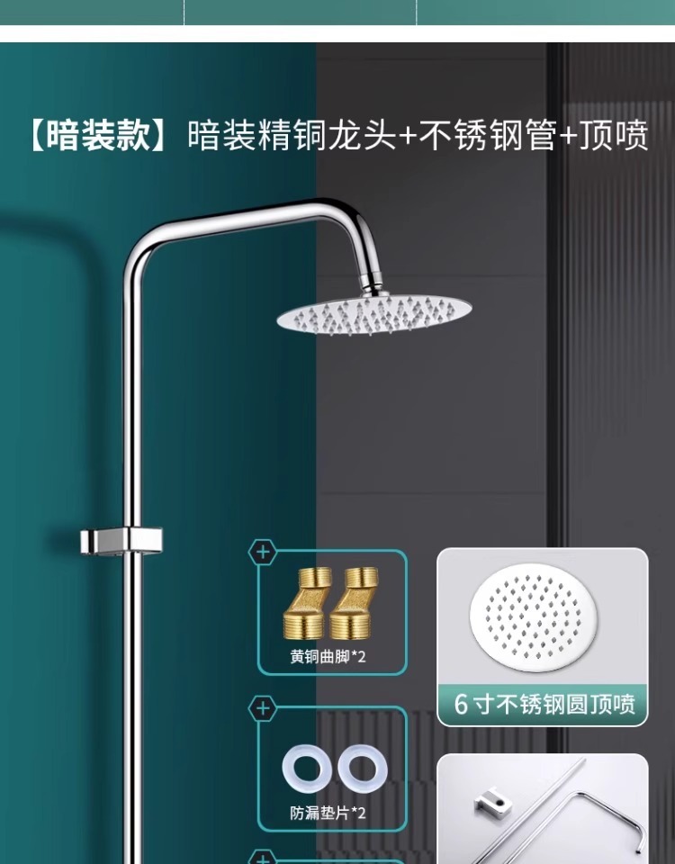 学校用花洒 校用淋浴 (【暗装款】精铜龙头+不锈钢管+6寸不锈钢圆顶喷)卫浴工程花洒套装澡堂淋浴浴场学校浴池简易明装暗装冷热喷头
