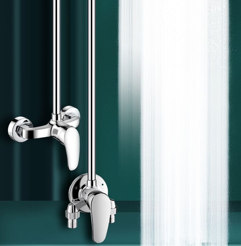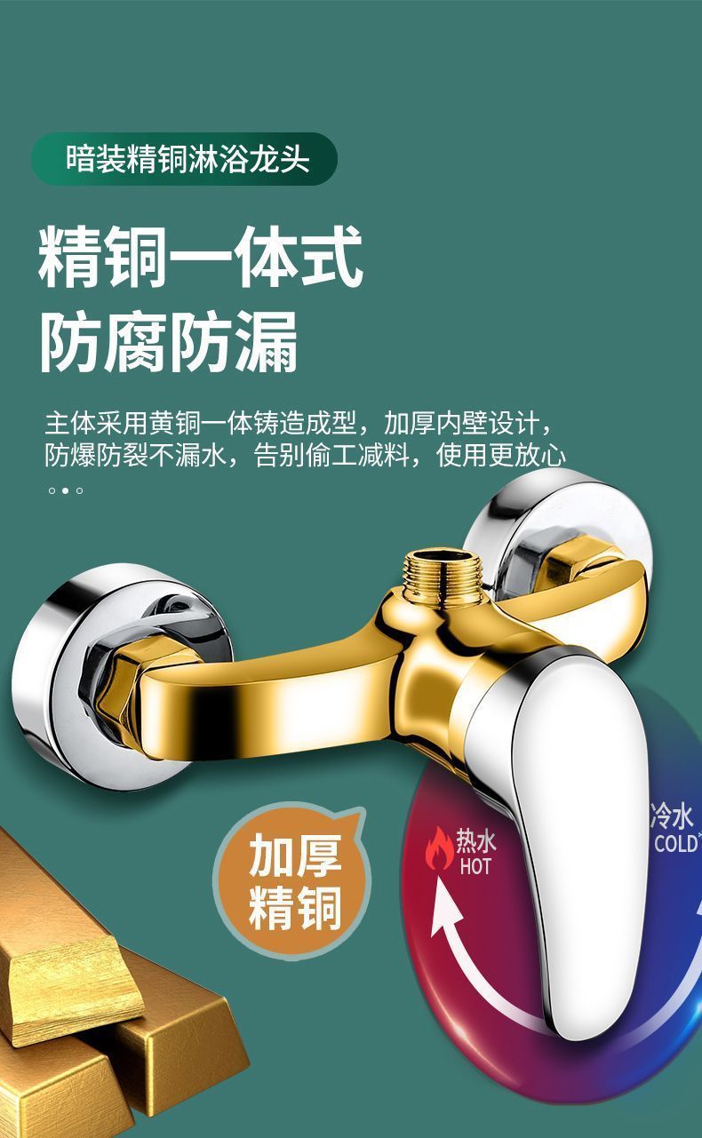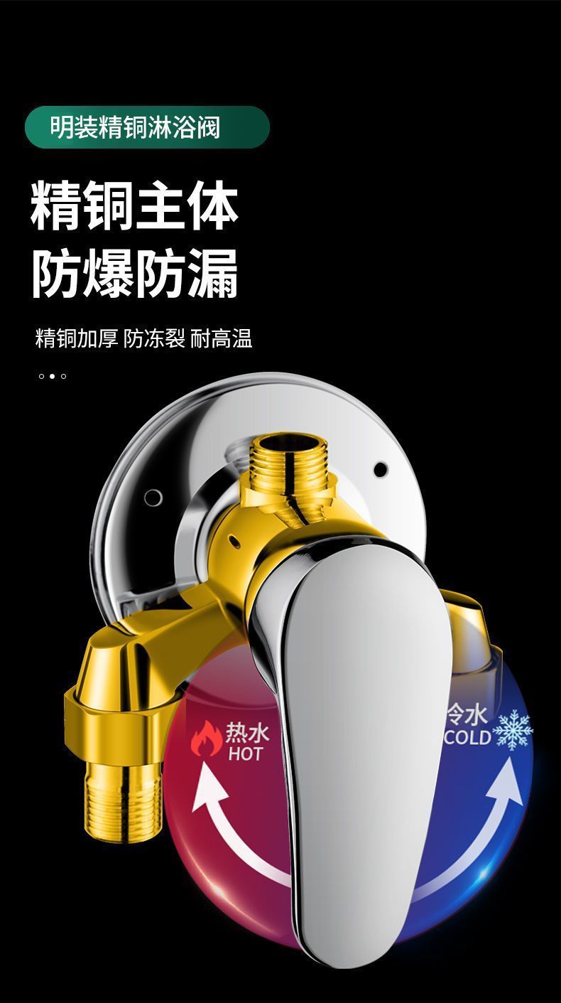 花洒淋浴配件套装公共澡堂淋浴室(【合金】明装龙头七字+不锈钢防爆喷头)洗浴池宾馆学校工地简易单水明装暗装冷热花洒套装