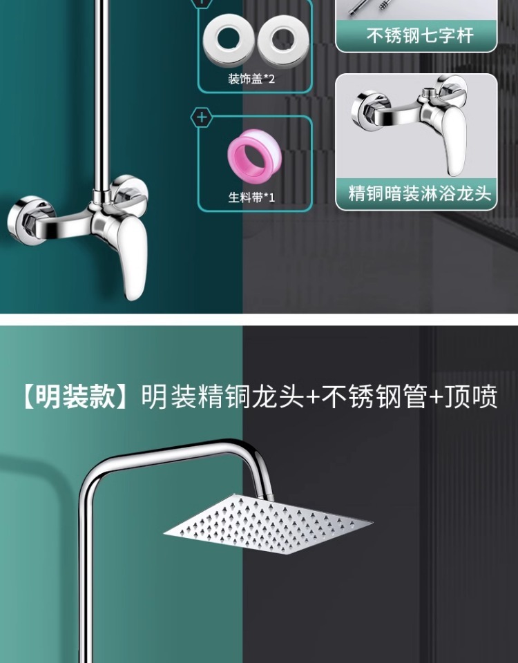 学校洗浴花洒套装(【精铜款】明装龙头+7字杆+6寸圆喷)公共澡堂淋浴器学校浴池冷热水龙头淋浴花洒套装