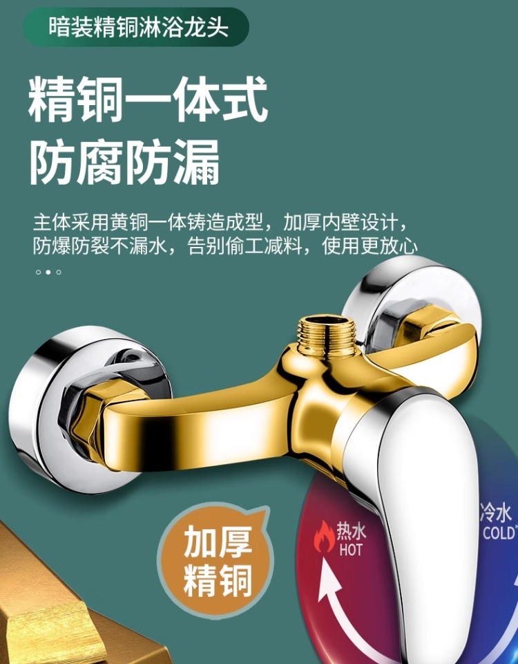 学校洗浴花洒套装(【精铜款】暗装龙头+7字杆+8寸圆喷)公共澡堂淋浴器学校浴池冷热水龙头淋浴花洒套装