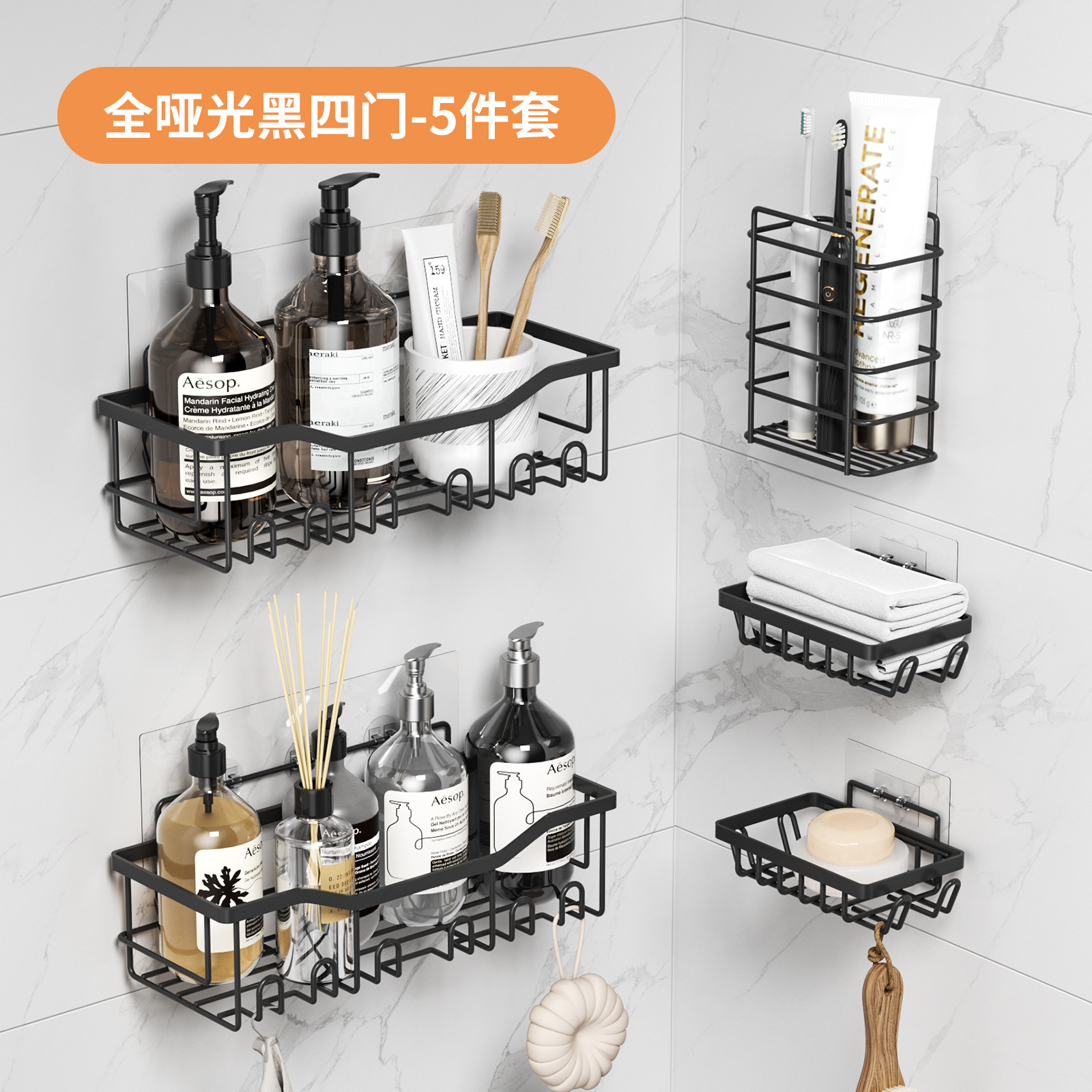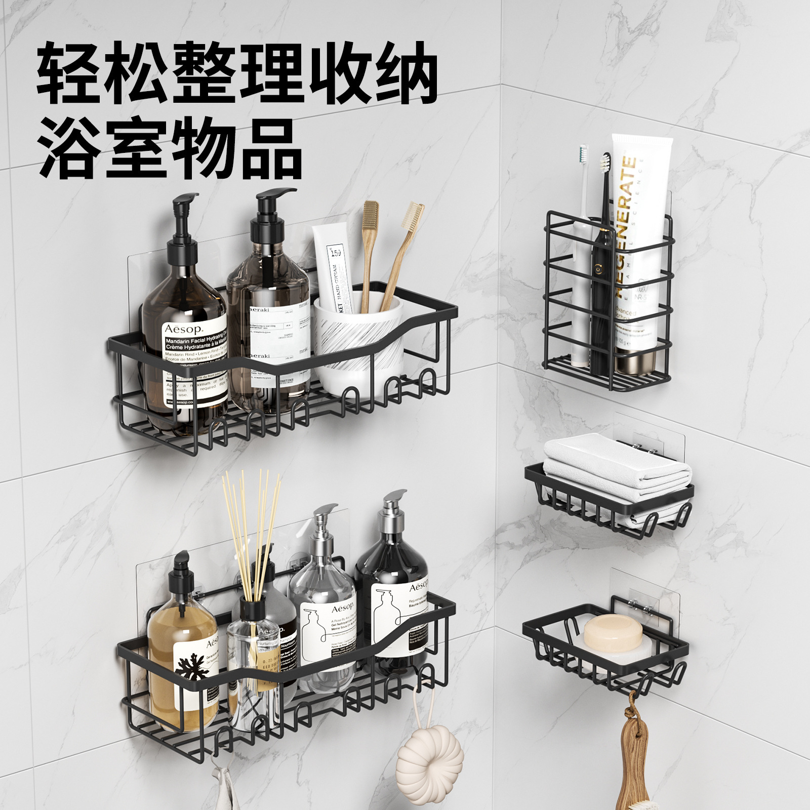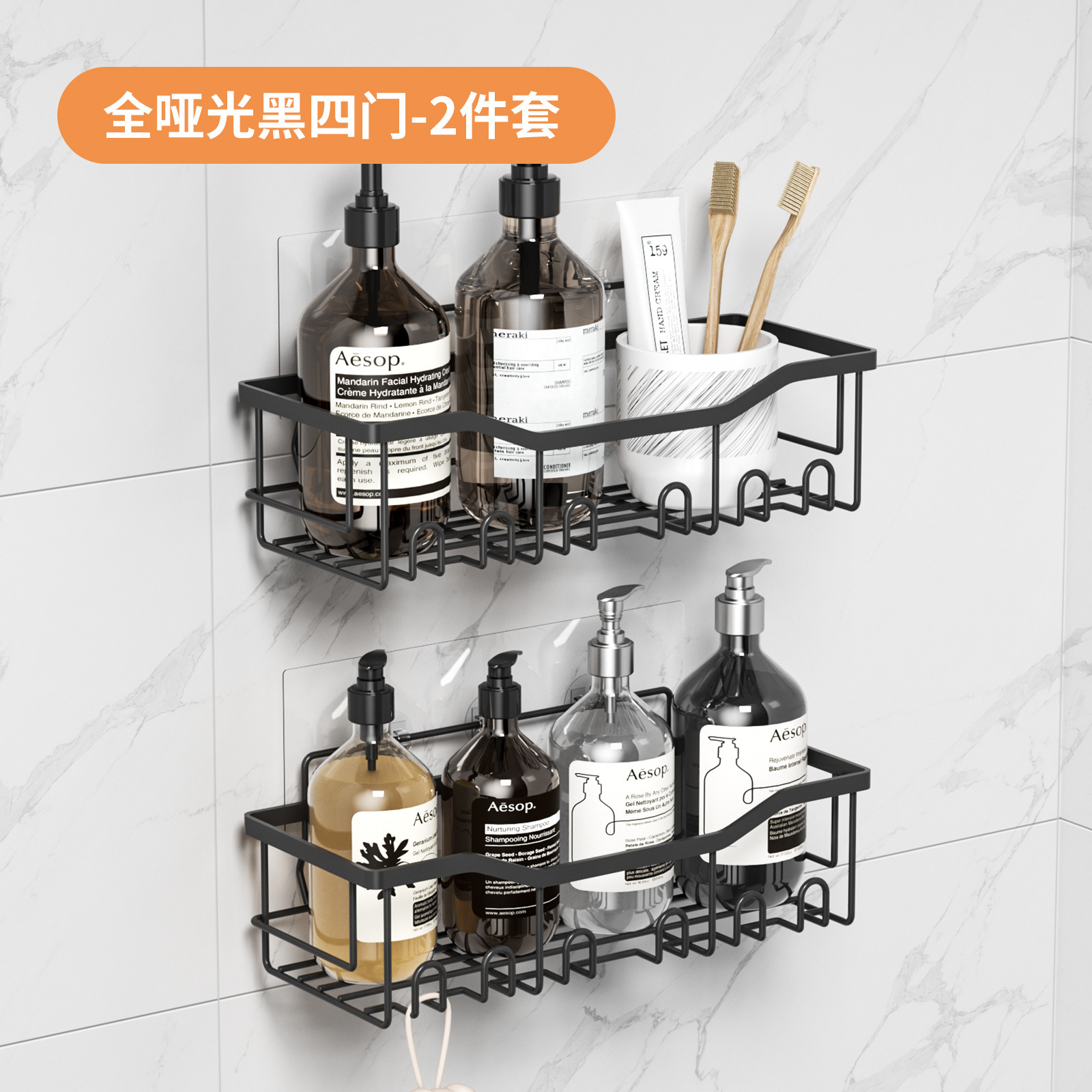 免打孔收纳(置物两件套)浴室置物铁艺卫生间墙上壁挂式洗漱用品肥皂架子