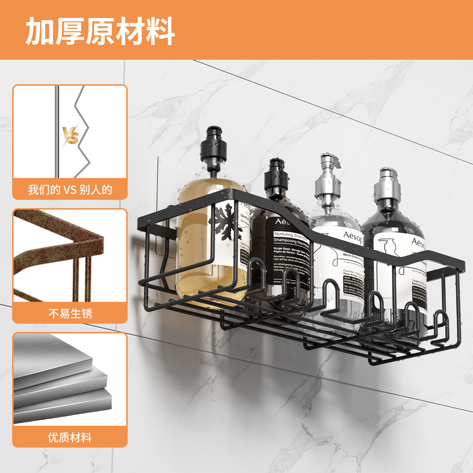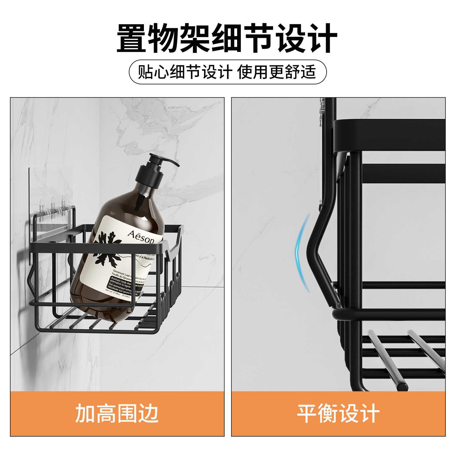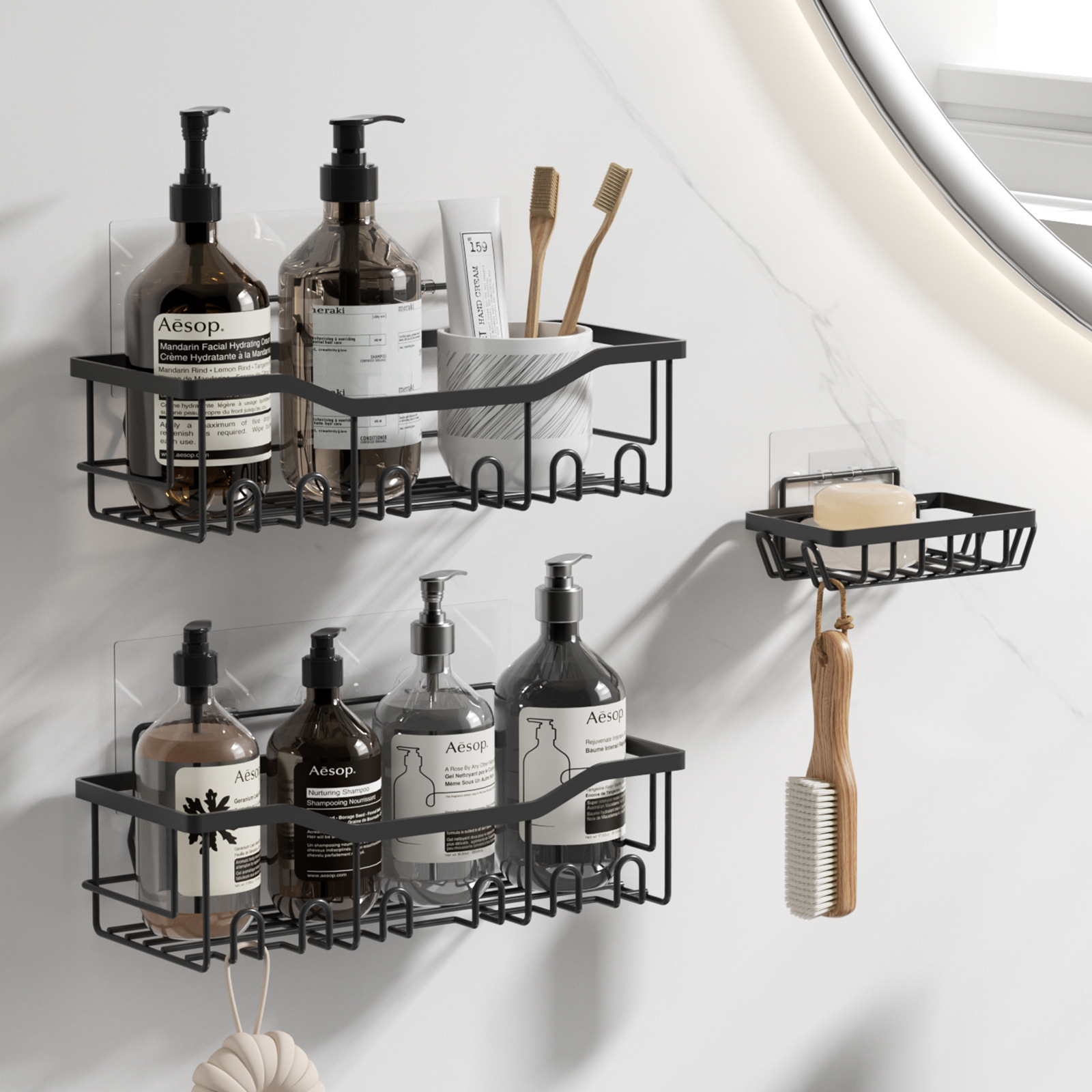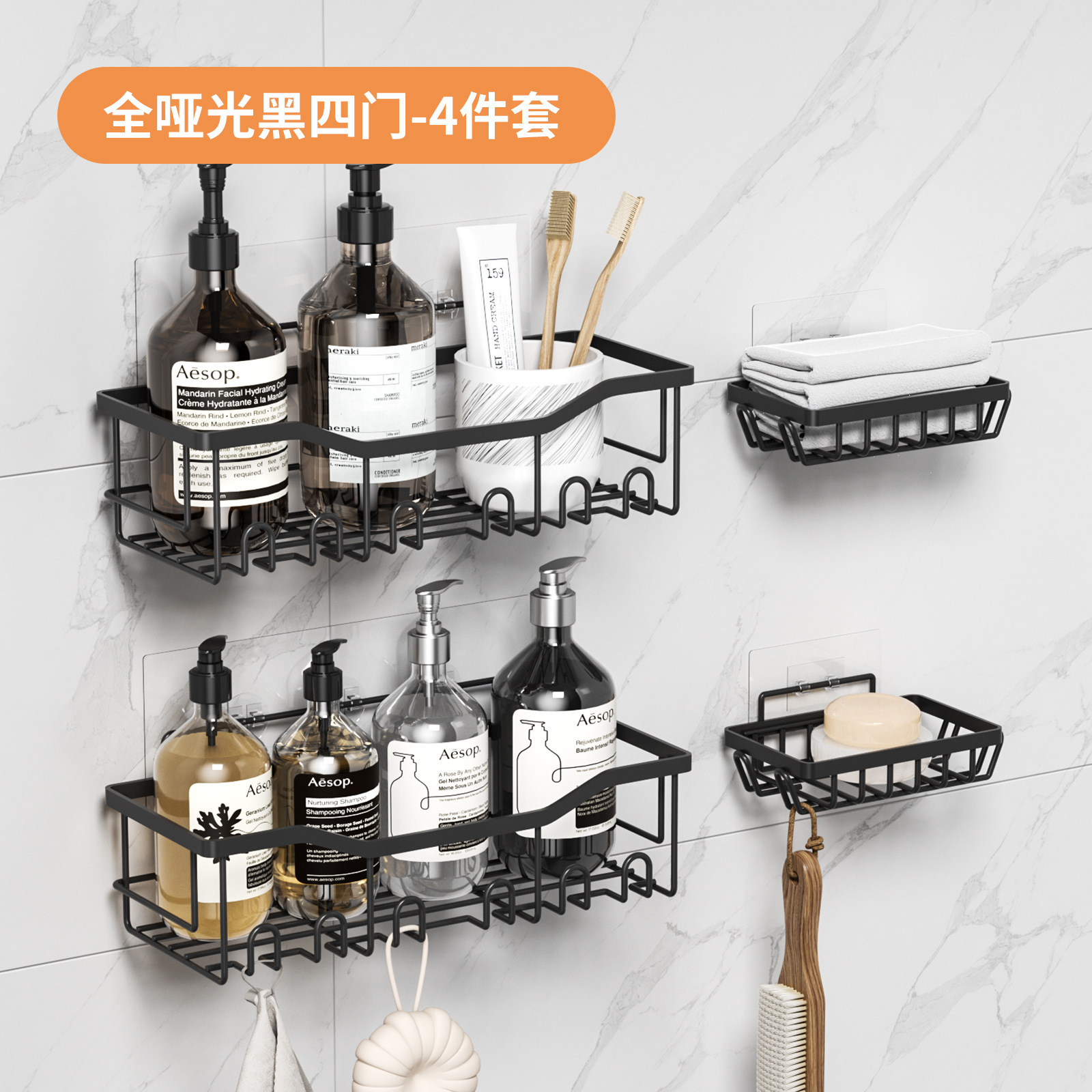 免打孔收纳(置物两件套)浴室置物铁艺卫生间墙上壁挂式洗漱用品肥皂架子