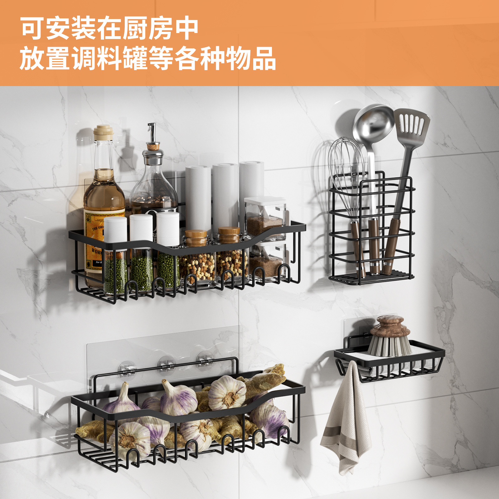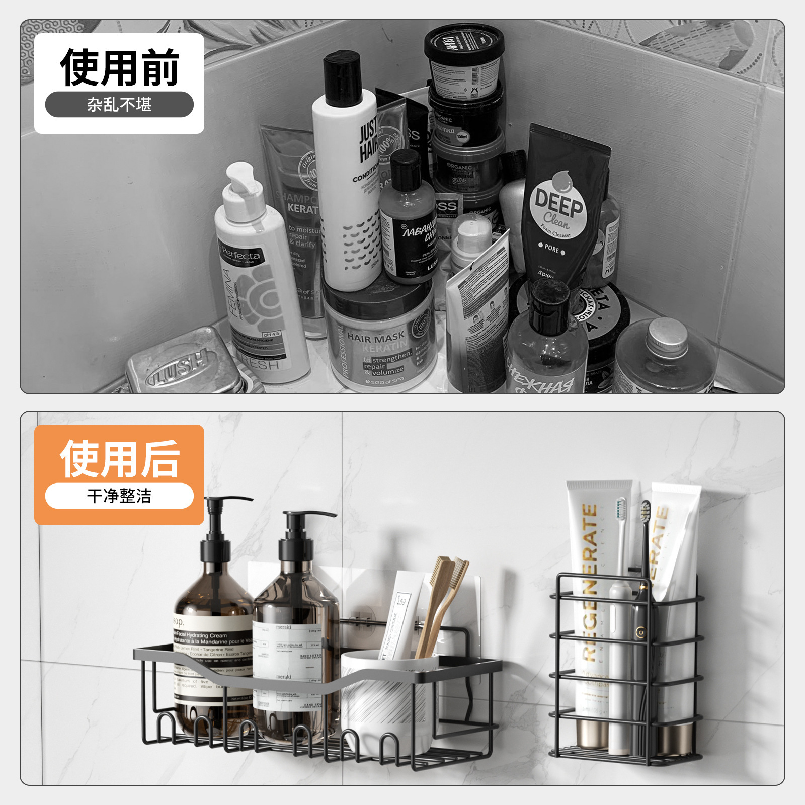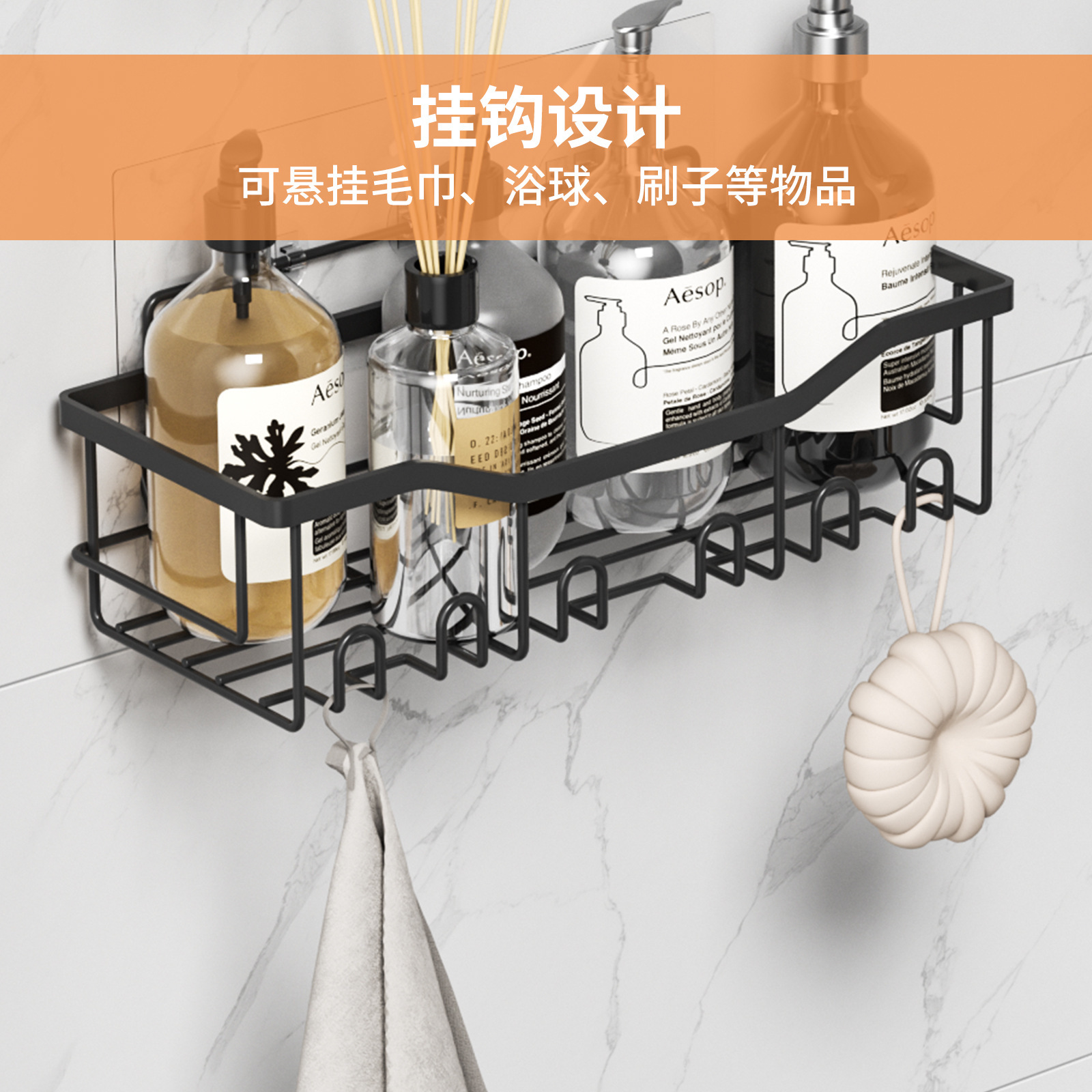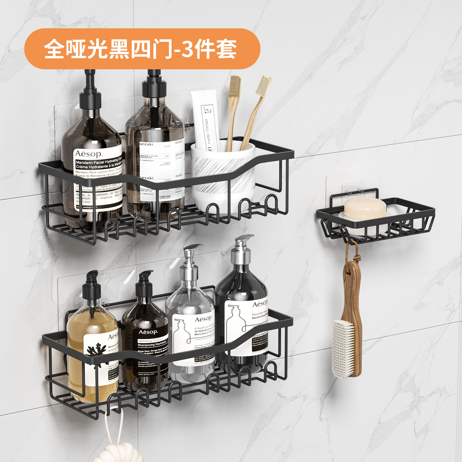 免打孔收纳(置物三件套)浴室置物铁艺卫生间墙上壁挂式洗漱用品肥皂架子
