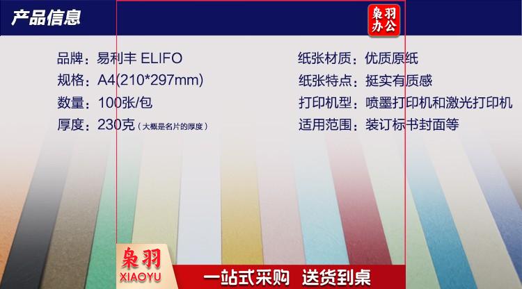易利丰 230g 封面彩色皮纹纸 A4 100张 深蓝色 单位:包