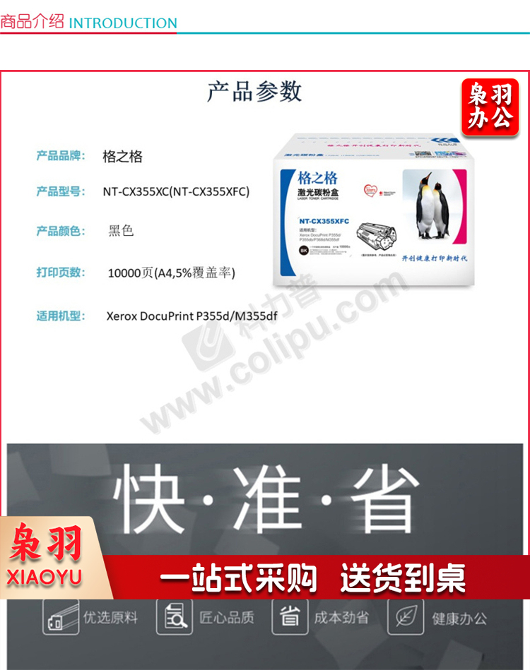 格之格/G&G NT-CX355FXC/CT201939 墨粉 10000页 (黑色)适用于Xerox DocuPrint P355d/M355df(单位:盒)