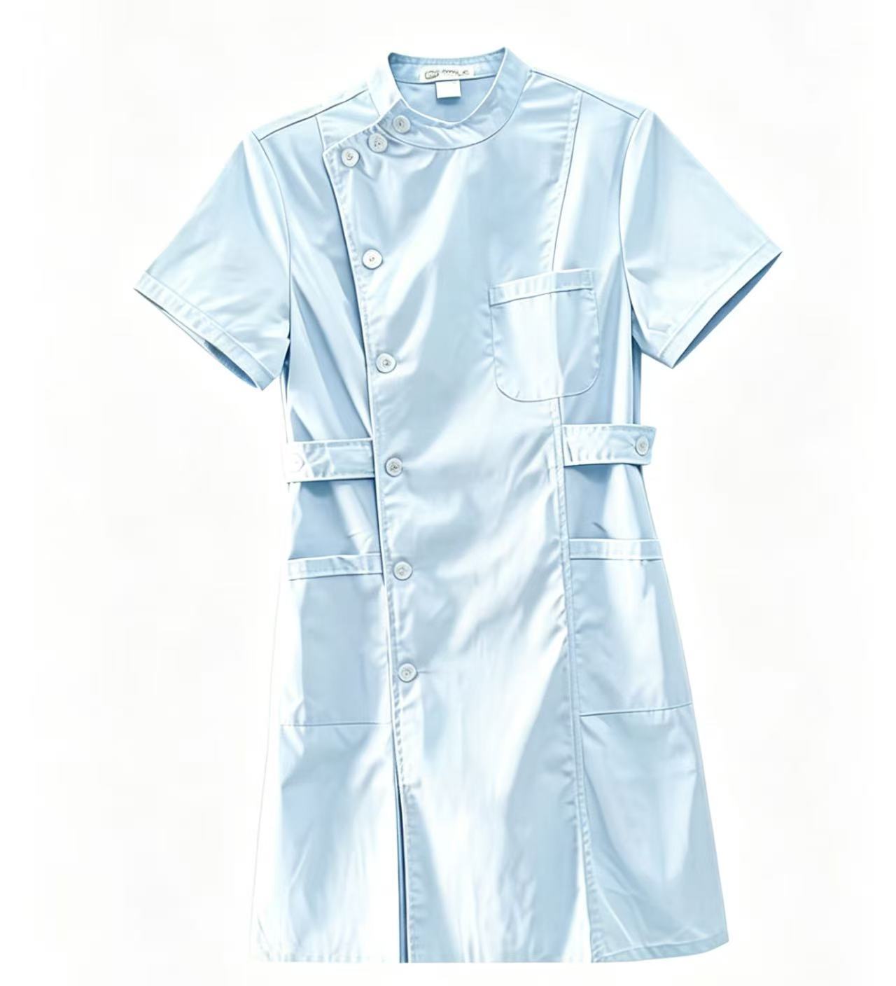 医用蓝色护士服卫校实验服短袖长款大褂药店美容院工作服