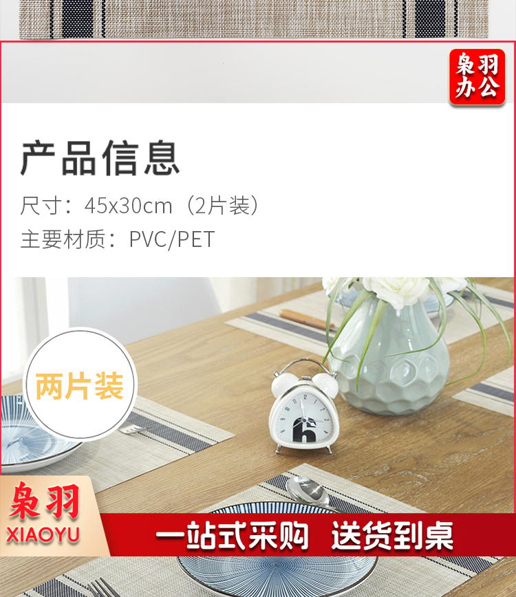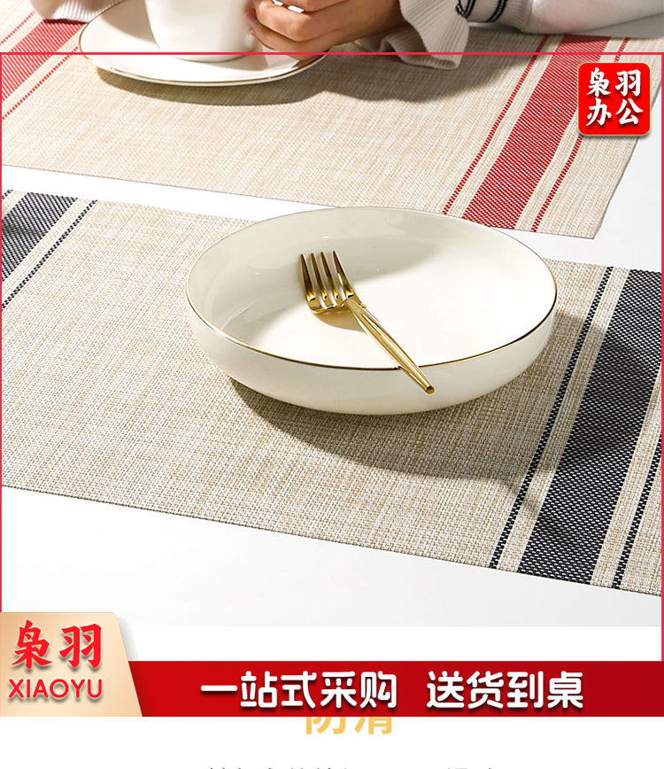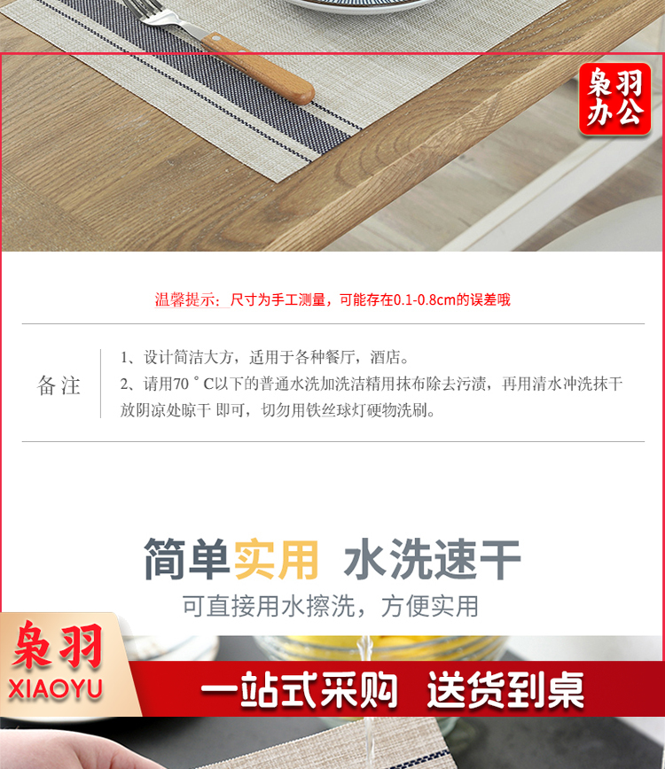 餐桌垫 西餐垫防水防油 隔热垫锅垫防烫垫 茶几桌布PVC餐垫 45*30cm 简约条纹2片装